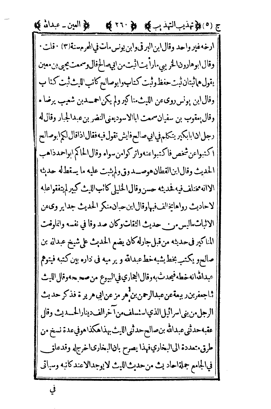 أرخه غير واحد وقال ابن البرقي وابن يونس مات في المحرم سنة 3 قلت وقال أبو هارون الخريبي ما رأيت أثبت من أبي صالح قال وسمعت يحيى بن معين يقول هما ثبتان ثبت حفظ وثبت كتاب وأبو صالح كاتب الليث ثبت كتاب وقال ابن يونس روى عن الليث مناكير ولم يكن أحمد بن شعيب يرضاه وقال يعقوب بن سفيان سمعت أبا الأسود يعني النضر بن عبد الجبار وقال له رجل أن أبا بكير يتكلم في أبي صالح فأيش تقول فيه فقال إذا قال لكم أبو صالح اكتبوا عن شخص فاكتبوا عنه واتركوا من سواه وقال الحاكم أبو أحمد ذاهب الحديث وقال ابن القطان هو صدوق ولم يثبت عليه ما يسقط له حديثه إلا أنه مختلف فيه فحديثه حسن وقال الخليلي كاتب الليث كبير لم يتفقوا عليه لأحاديث رواها يخالف فيها وقال ابن حبان منكر الحديث جدا يروي عن الأثبات ما ليس من حديث الثقات وكان صدوقا في نفسه وإنما وقعت المناكير في حديثه من قبل جار له كان يضع الحديث على شيخ عبد الله بن صالح ويكتب بخط يشبه خط عبد الله ويرميه في داره بين كتبه فيتوهم عبد الله أنه خطه فيحدث به وقال البخاري في البيوع من صحيحه وقال الليث ثنا جعفر بن ربيعة عن عبد الرحمن بن هرمز عن أبي هريرة فذكر حديث الرجل من بني إسرائيل الذي استسلف من آخر ألف دينار الحديث وقال عقبة حدثني عبد الله بن صالح حدثني الليث بهذا هكذا هو في عدة نسخ من طرق متعددة إلى البخاري فهذا يصرح بأن البخاري أخرج له وقد علق في الجامع جملة أحاديث من حديث الليث لا يوجد إلا عند كاتبه وسيأتي