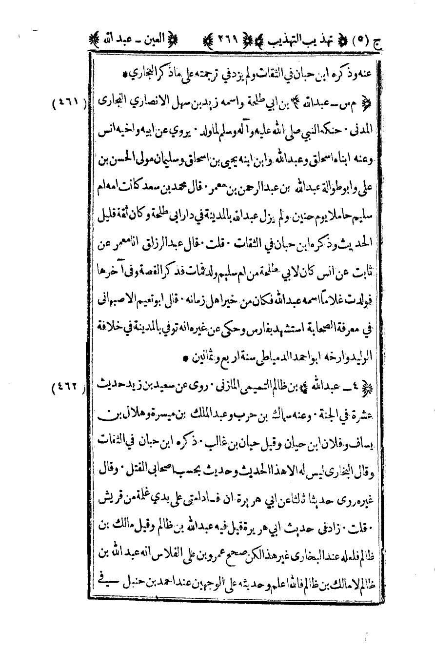 463 - "4 - عبد الله" بن ظالم التميمي المازني روى عن سعيد بن زيد حديث عشرة في الجنة وعنه سماك بن حرب وعبد الملك بن ميسرة وهلال بن يساف وفلان بن حيان وقيل حيان بن غالب ذكره ابن حبان في الثقات وقال البخاري ليس له إلا هذا الحديث وحديث بحسب أصحابي القتل وقال غيره روى حديثا ثالثا عن أبي هريرة أن فساد أمتي على يدي غلمة من قريش قلت زاد في حديث أبي هريرة قيل فيه عبد الله بن ظالم وقيل مالك بن ظالم فلعله عند البخاري غير هذا لكن صحح عمرو بن علي الفلاس أنه عبد الله بن ظالم لا مالك بن ظالم فالله أعلم وحديثه على الوجهين عند أحمد بن حنبل في