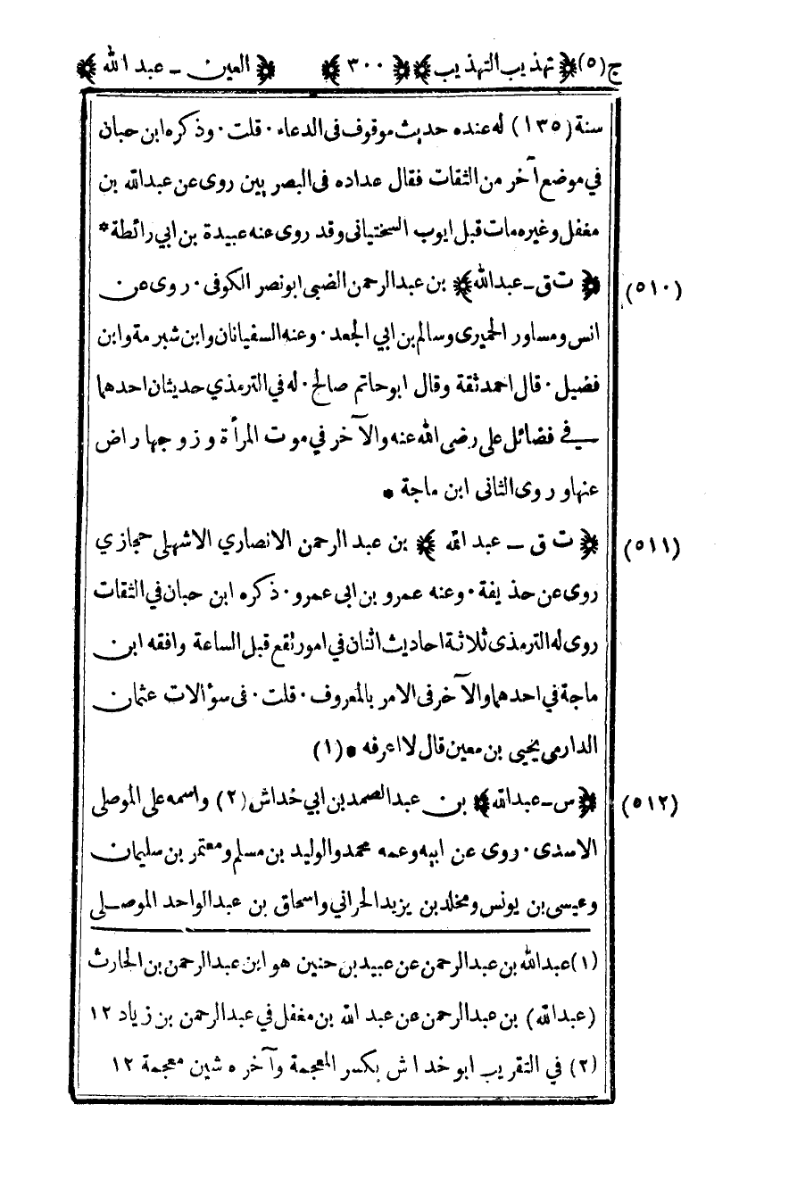 1عبد الله بن عبد الرحمن عن عبيد بن حنين هو ابن عبد الرحمن بن الحارث "عبد الله" بن عبد الرحمن عن عبد الله بن مغفل في عبد الرحمن بن زياد 12.