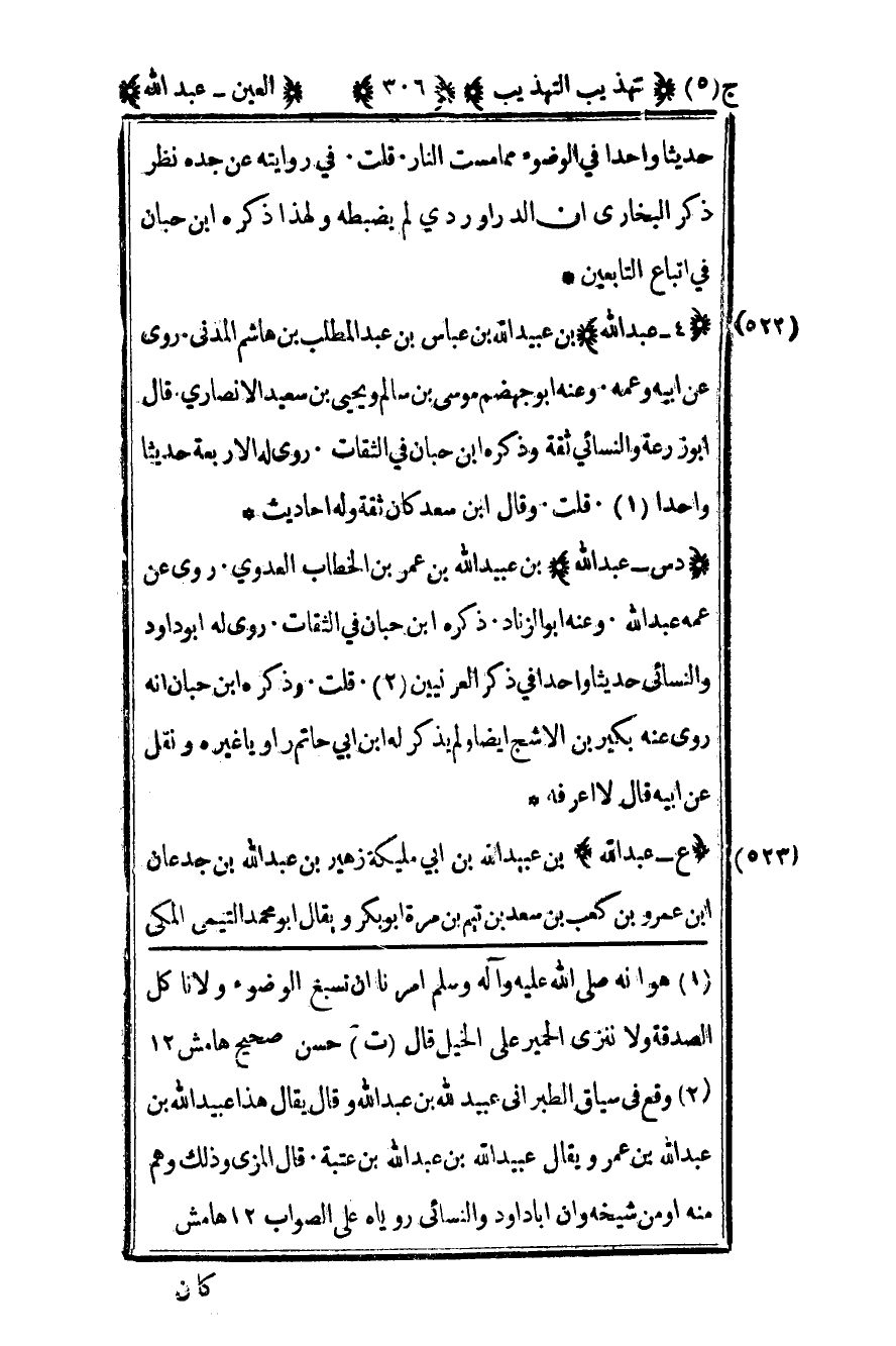 2وقع في سياق الطبراني عبيد الله بن عبد الله وقال يقال هذا عبيد الله بن عبد الله بن عمر ويقال عبيد الله بن عبد الله بن عتبة. قال المزي وذلك وهم منه أو من شيخه وأن أبا داود والنسائي روياه على الصواب 12 هامش.