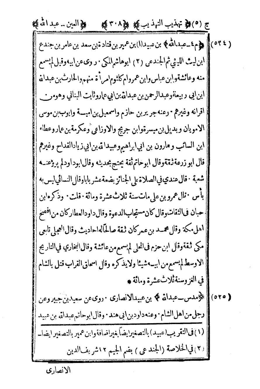 525 - "مد س - عبد الله" بن عبيد الأنصاري روى عن سعيد بن جبير وعن رجل من أهل الشام وعنه داود بن أبي هند وقال أبو حاتم عبد الله بن عبيد