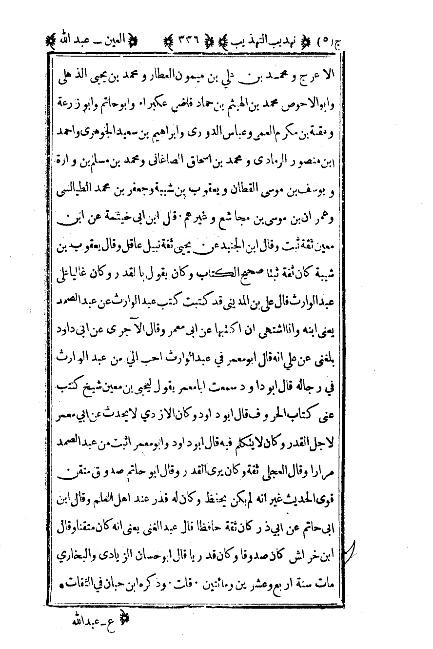الأعرج ومحمد بن علي بن ميمون العطار ومحمد بن يحيى الذهلي وأبو الأحوص محمد بن الهيثم بن حماد قاضي عكبراء وأبو حاتم وأبو زرعة وعقبة بن مكرم العمي وعباس الدوري وإبراهيم بن سعيد الجوهري وأحمد بن منصور الرمادي ومحمد بن إسحاق الصاغاني ومحمد بن مسلم بن وارة ويوسف بن موسى القطان ويعقوب بن شيبة وجعفر بن محمد الطيالسي وعمران بن موسى بن مجاشع وغيرهم قال ابن أبي خيثمة عن ابن معين ثقة ثبت وقال ابن الجنيد عن يحيى ثقة نبيل عاقل وقال يعقوب بن شيبة كان ثقة ثبتا صحيح الكتاب وكان يقول بالقدر وكان غاليا على عبد الوارث قال علي بن المديني قد كتبت عبد الوارث عن عبد الصمد يعني ابنه وأنا اشتهي أن أكتبها عن أبي معمر وقال الآجري عن أبي داود بلغني عن علي أنه قال أبو معمر في عبد الوارث أحب إلي من عبد الوارث في رجاله قال أبو داود سمعت أبا معمر يقول ليحيى بن معين شيخ كتب عني كتاب الحروف قال أبو داود وكان الأزدي لا يحدث عن أبي معمر لأجل القدر وكان لا يتكلم فيه قال أبو داود وأبو معمر أثبت من عبد الصمد مرارا وقال العجلي ثقة وكان يرى القدر وقال أبو حاتم صدوق متقن قوي الحديث غير أنه لم يكن يحفظ وكان له قدر عند أهل العلم وقال ابن أبي حاتم عن أبي ذر كان ثقة حافظا قال عبد الغني يعني أنه كان متقنا وقال ابن خراش كان صدوقا وكان قدريا قال أبو حسان الزيادي والبخاري مات سنة أربع وعشرين ومائتين قلت وذكره ابن حبان في الثقات