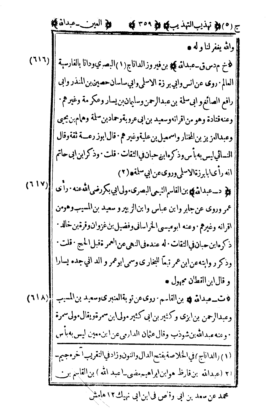 1 "الداناج" في الخلاصة بفتح الدال والنون وزاد في التقريب آخره جيم.