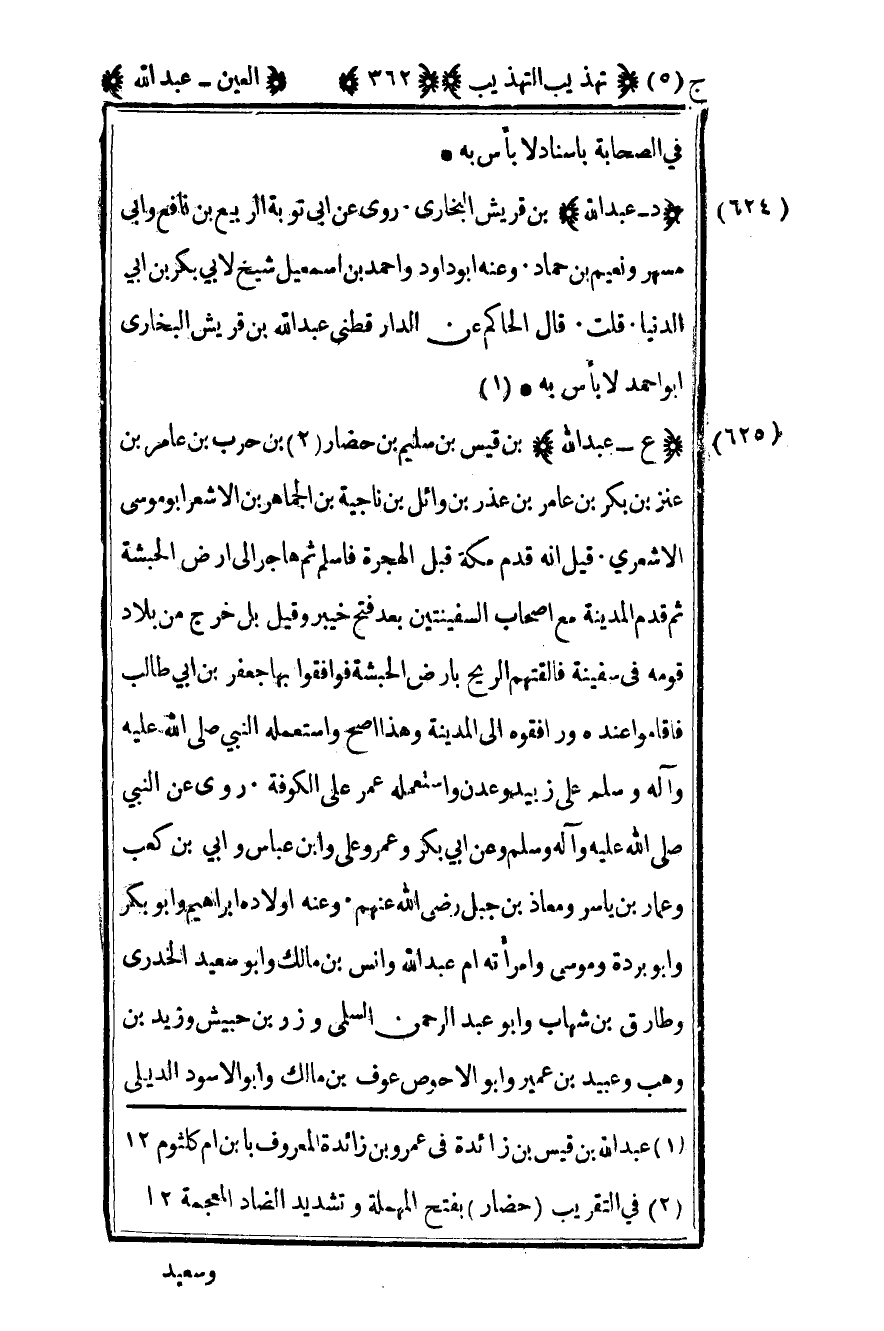 2 في التقريب "حضار" بفتح المهملة وتشديد الضاد المعجمة 12.