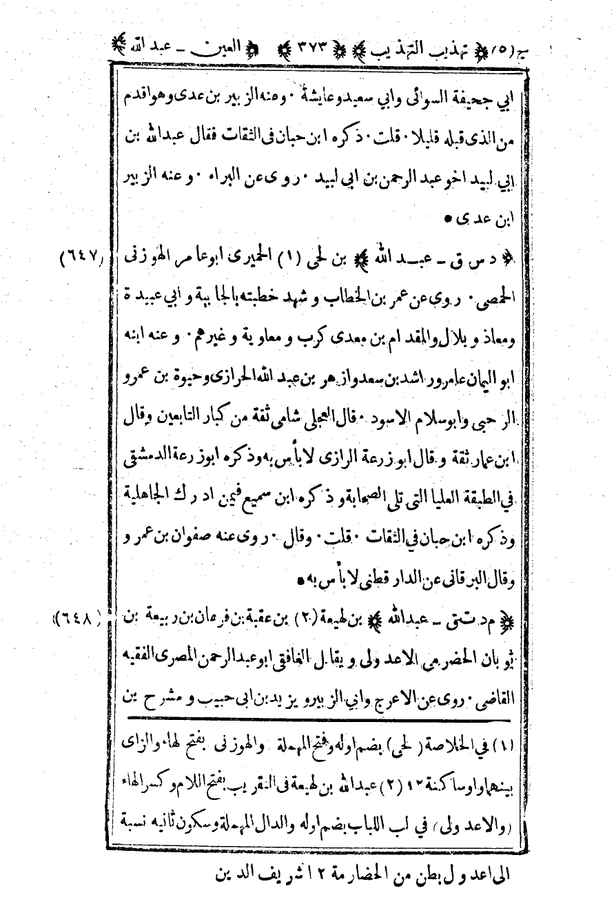 1 في الخلاصة "لحي" بضم أوله وفتح المهملة والهوزني بفتح الهاء والزاي بينهما واو ساكنة 12.