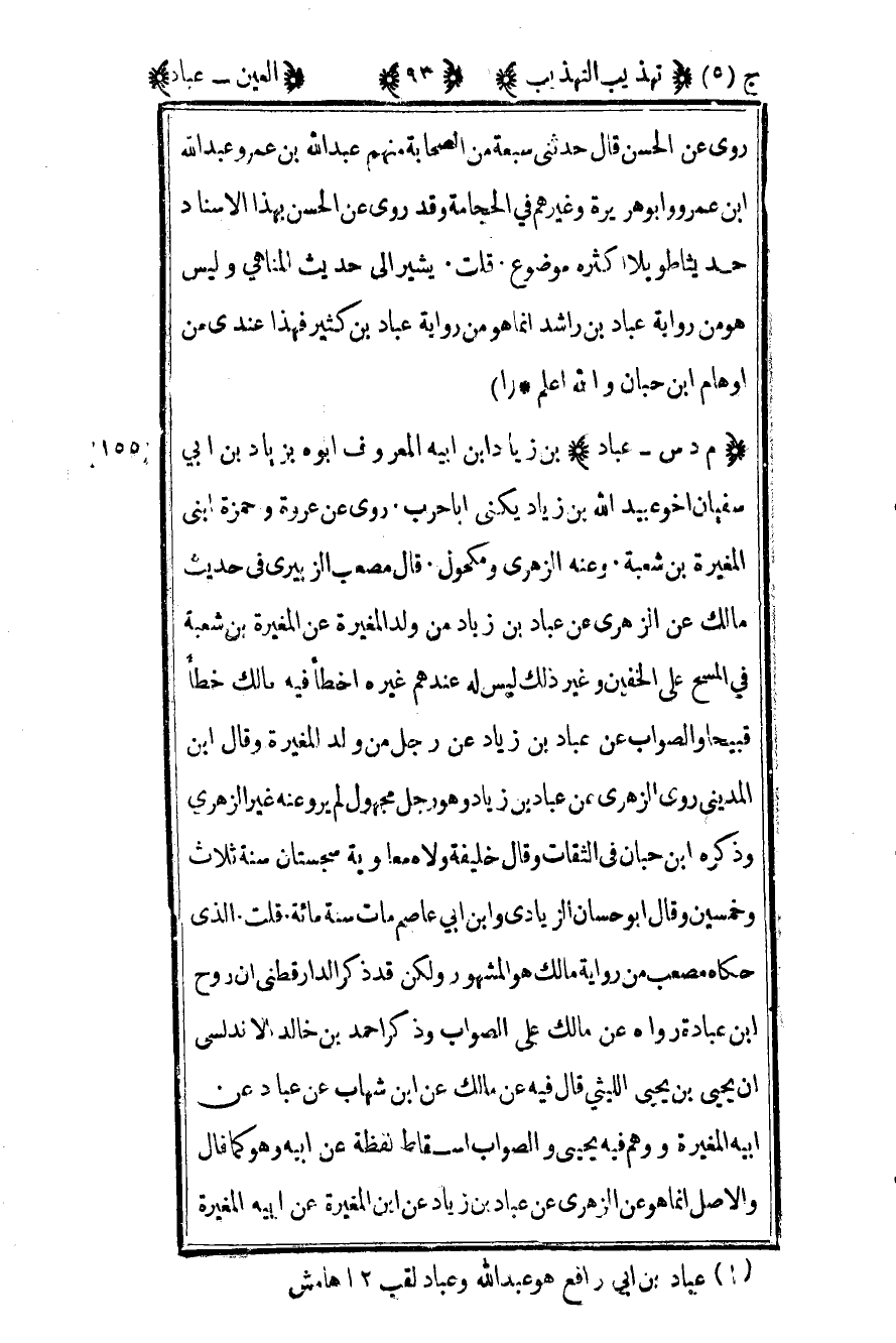 155 - "م د س – عباد" بن زياد بن أبيه المعروف أبوه بزياد بن أبي سفيان أخو عبيد الله بن زياد يكنى أبا حرب روى عن عروة وحمزة ابني المغيرة بن شعبة وعنه الزهري ومكحول قال مصعب الزبيري في حديث مالك عن الزهري عن عباد بن زياد من ولد المغيرة عن المغيرة بن شعبة في المسح على الخفين وغير ذلك ليس له عندهم غيره أخطأ فيه مالك خطأ قبيحا والصواب عن عباد بن زياد عن رجل من ولد المغيرة وقال ابن المديني روى الزهري عن عباد بن زياد وهو رجل مجهول لم يرو عنه غير الزهري وذكره ابن حبان في الثقات وقال خليفة ولاه معاوية سجستان سنة ثلاث وخمسين وقال أبو حسان الزيادي بن أبي عاصم مات سنة مائة قلت الذي حكاه مصعب من رواية مالك هو المشهور ولكن قد ذكر الدارقطني أن روح بن عبادة رواه عن مالك على الصواب وذكر أحمد بن خالد الأندلسي أن يحيى بن يحيى الليثي قال فيه عن مالك عن ابن شهاب عن عباد عن أبيه المغيرة ووهم فيه يحيى والصواب إسقاط لفظة عن أبيه وهو كما قال والأصل إنما هو عن الزهري عن عباد بن زياد عن ابن المغيرة عن أبيه المغيرة