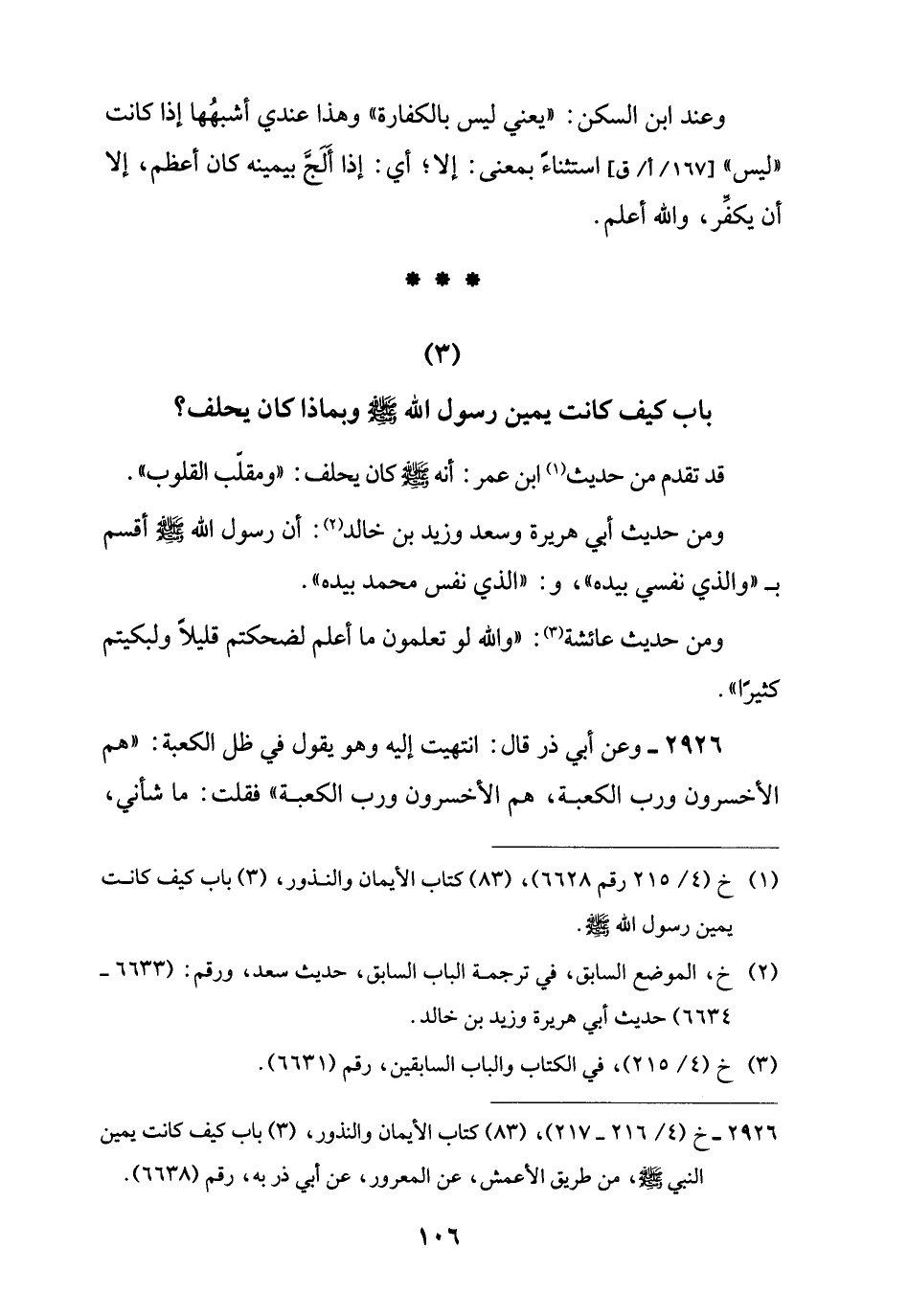 (3) باب كيف كانت يمين رسول اللَّه -صلى اللَّه عليه وسلم- وبماذا كان يحلف؟