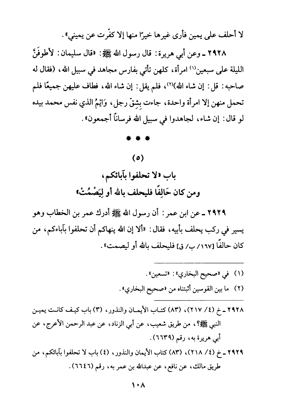 (5) باب "لا تحلفوا بآبائكم، ومن كان حَالِفًا فليحلف باللَّه أو لِيَصْمُتْ"