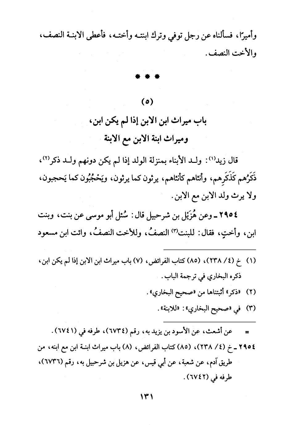 (5) باب ميراث ابن الابن إذا لم يكن ابن، وميراث ابنة الابن مع الابنة