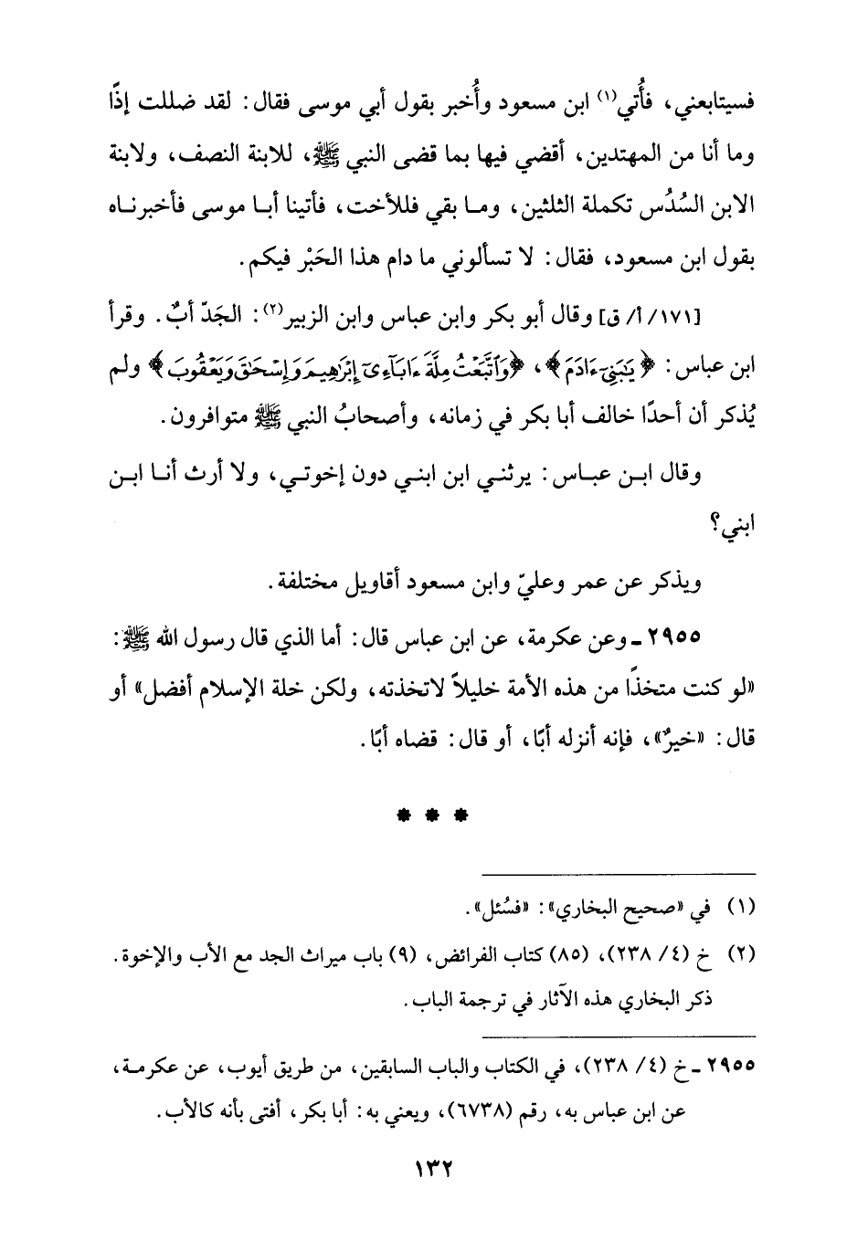 2955 - خ (4/ 238)، في الكتاب والباب السابقين، من طريق أيوب، عن عكرمة، عن ابن عباس به، رقم (6738)، ويعني به: أبا بكر، أفتى بأنه كالأب.