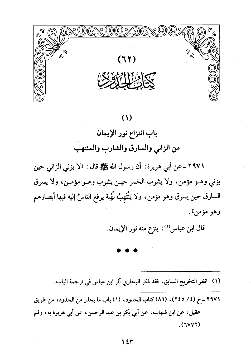 (1) باب انتزاع نور الإيمان من الزاني والسارق والشارب والمنتهب