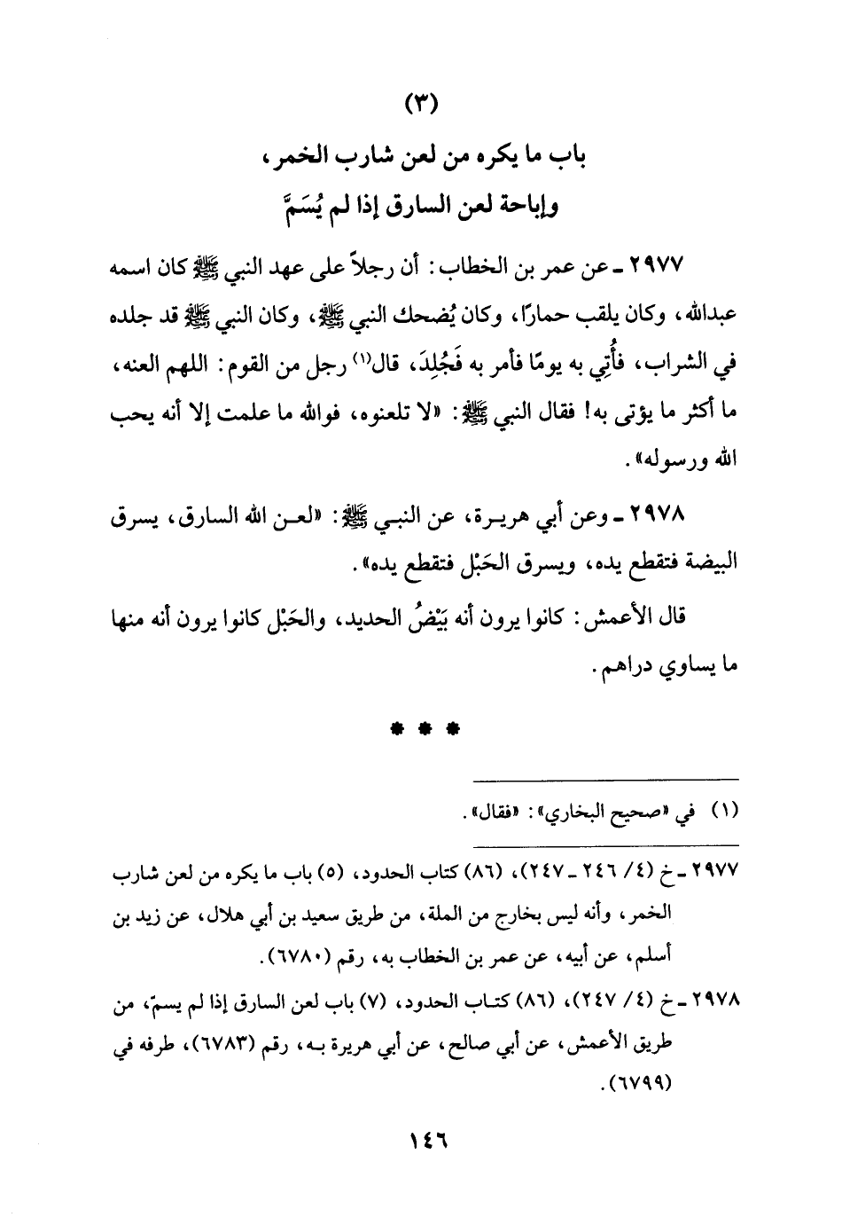 (3) باب ما يكره من لعن شارب الخمر، وإباحة لعن السارق إذا لم يُسَمَّ