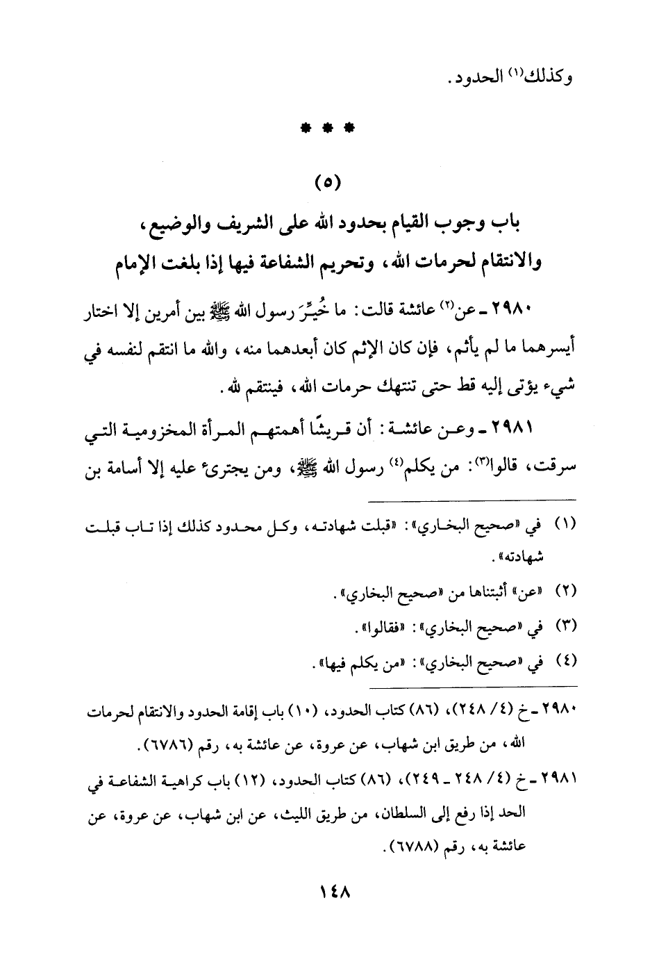 (5) باب وجوب القيام بحدود اللَّه على الشريف والوضيع، والانتقام لحرمات اللَّه، وتحريم الشفاعة فيها إذا بلغت الإمام