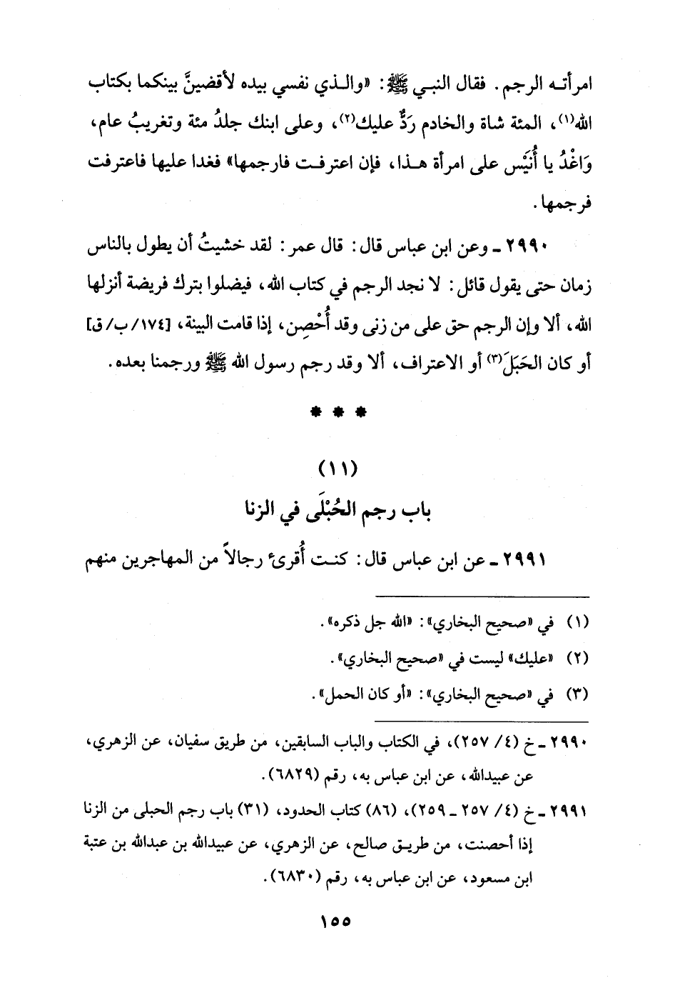 2991 - خ (4/ 257 - 259)، (86) كتاب الحدود، (31) باب رجم الحبلى من الزنا إذا أحصنت، من طريق صالح، عن الزهري، عن عبيد اللَّه بن عبد اللَّه بن عتبة ابن مسعود، عن ابن عباس به، رقم (6830).