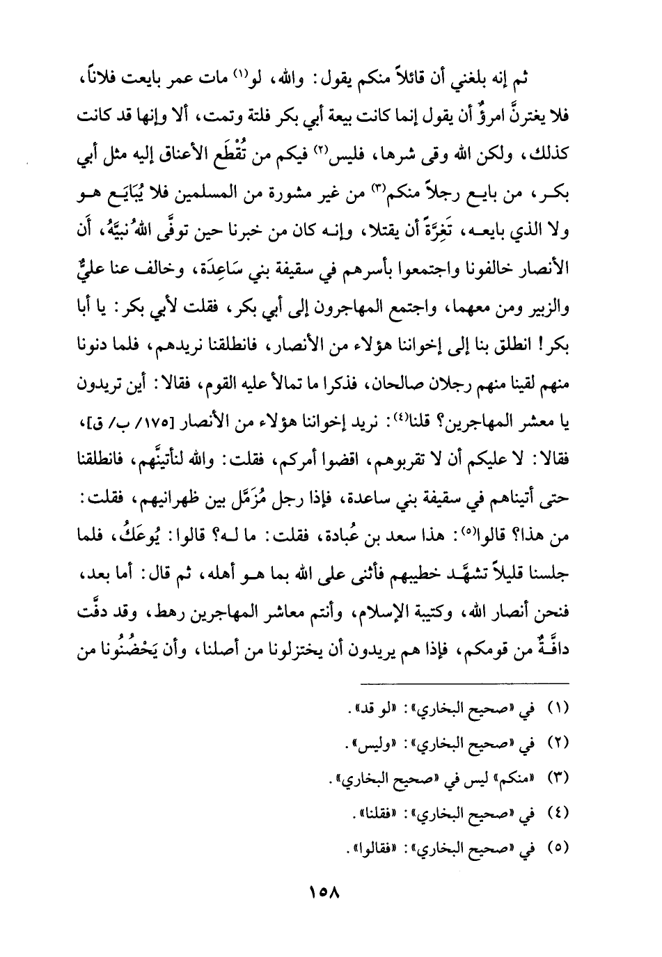 ثم إنه بلغني أن قائلًا منكم يقول: واللَّه، لو (¬1) مات عمر بايعت فلانًا، فلا يغترنَّ امرؤٌ أن يقول إنما كانت بيعة أبي بكر فلتة وتمت، ألا وإنها قد كانت كذلك، ولكن اللَّه وقى شرها، فليس (¬2) فيكم من تُقْطَع الأعناق إليه مثل أبي بكر، من بايع رجلًا منكم (¬3) من غير مشورة من المسلمين فلا يُبَايَع هو ولا الذي بايعه، تَغِرَّةً أن يقتلا، وإنه كان من خبرنا حين توفَى اللَّهُ نبيَّهُ، أَن الأنصار خالفونا واجتمعوا بأسرهم في سقيفة بني سَاعِدَة، وخالف عنا عليٌّ والزبير ومن معهما، واجتمع المهاجرون إلى أبي بكر، فقلت لأبي بكر: يا أبا بكر! انطلق بنا إلى إخواننا هؤلاء من الأنصار، فانطلقنا نريدهم، فلما دنونا منهم لقينا منهم رجلان صالحان، فذكرا ما تمالأ عليه القوم، فقالا: أين تريدون يا معشر المهاجرين؟ قلنا (¬4): نريد إخواننا هؤلاء من الأنصار، فقالا: لا عليكم أن لا تقربوهم، اقضوا أمركم، فقلت: واللَّه لنأتينَّهم، فانطلقنا حتى أتيناهم في سقيفة بني ساعدة، فإذا رجل مُزَمَّل بين ظهرانيهم، فقلت: من هذا؟ قالوا (¬5): هذا سعد بن عُبادة، فقلت: ما له؟ قالوا: يُوعَكُ، فلما جلسنا قليلًا تشهَّد خطيبهم فأثنى على اللَّه بما هو أهله، ثم قال: أما بعد، فنحن أنصار اللَّه، وكتيبة الإسلام، وأنتم معاشر المهاجرين رهط، وقد دفَّت دافَّةٌ من قومكم، فإذا هم يريدون أن يختزلونا من أصلنا، وأن يَحْضُنُونا من