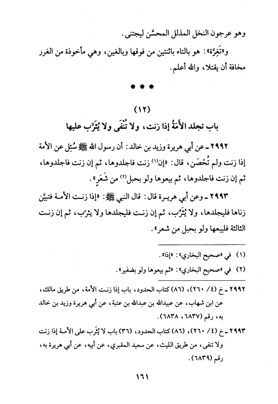 (12) باب تجلد الأَمَةُ إذا زنت، ولا تُنْفَى ولا يُثَرَّب عليها
