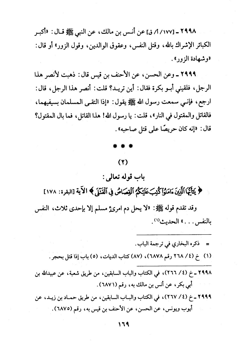 (2) باب قوله تعالى: {يَاأَيُّهَا الَّذِينَ آمَنُوا كُتِبَ عَلَيْكُمُ الْقِصَاصُ فِي الْقَتْلَى} الآية [البقرة: 178]