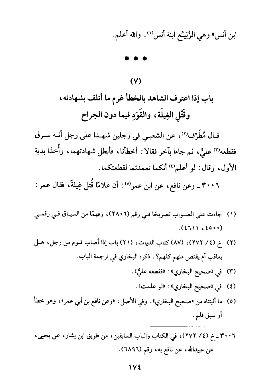 (7) باب إذا اعترف الشاهد بالخطأ غرم ما أتلف بشهادته، وقَتْلِ الغِيلَة، والقَوَدِ فيما دون الجراح