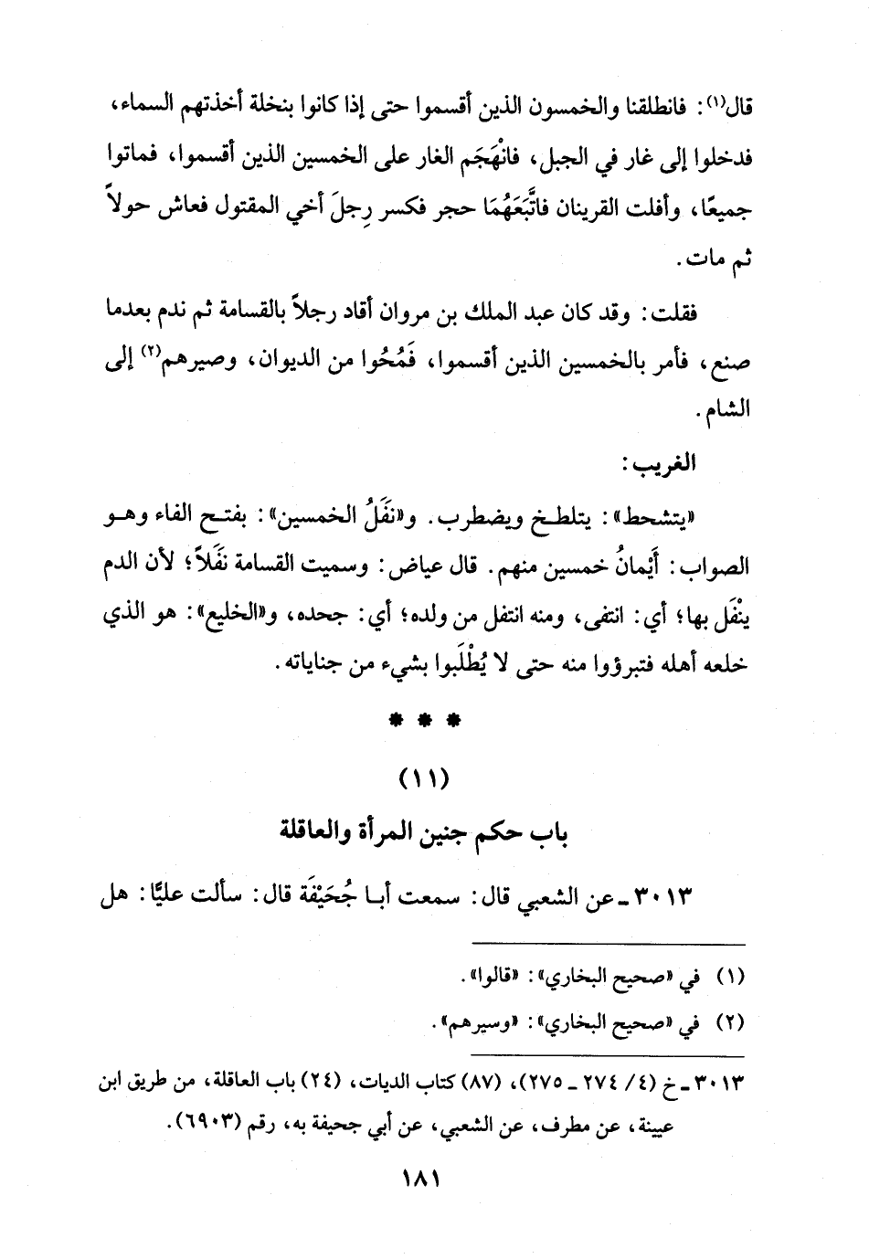 3013 - خ (4/ 274 - 275)، (87) كتاب الديات، (24) باب العاقلة، من طريق ابن عيينة، عن مطرف، عن الشعبي، عن أبي جحيفة به، رقم (6903).