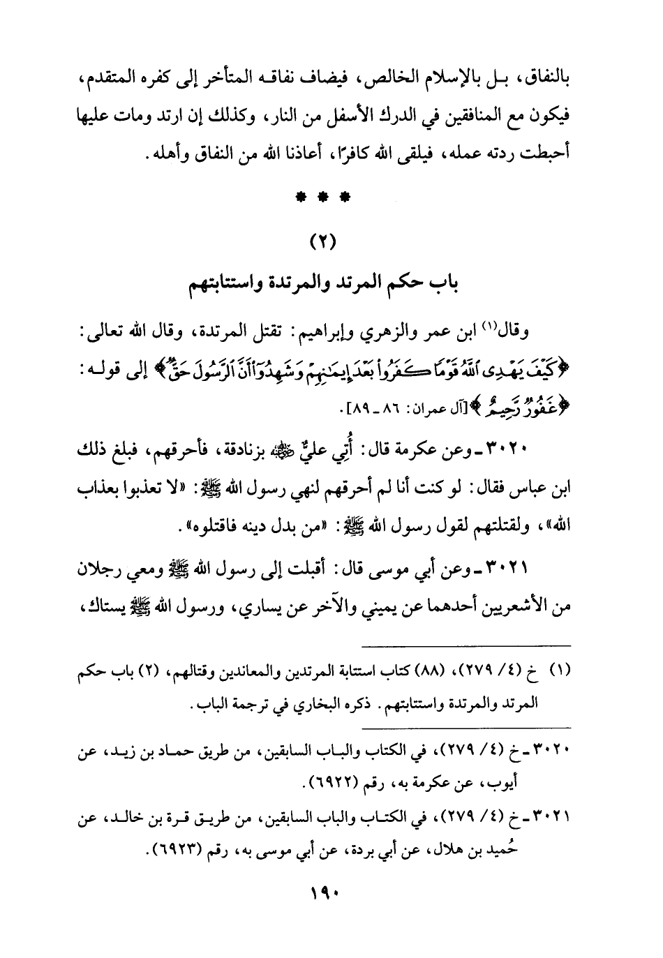 (2) باب حكم المرتد والمرتدة واستتابتهم
