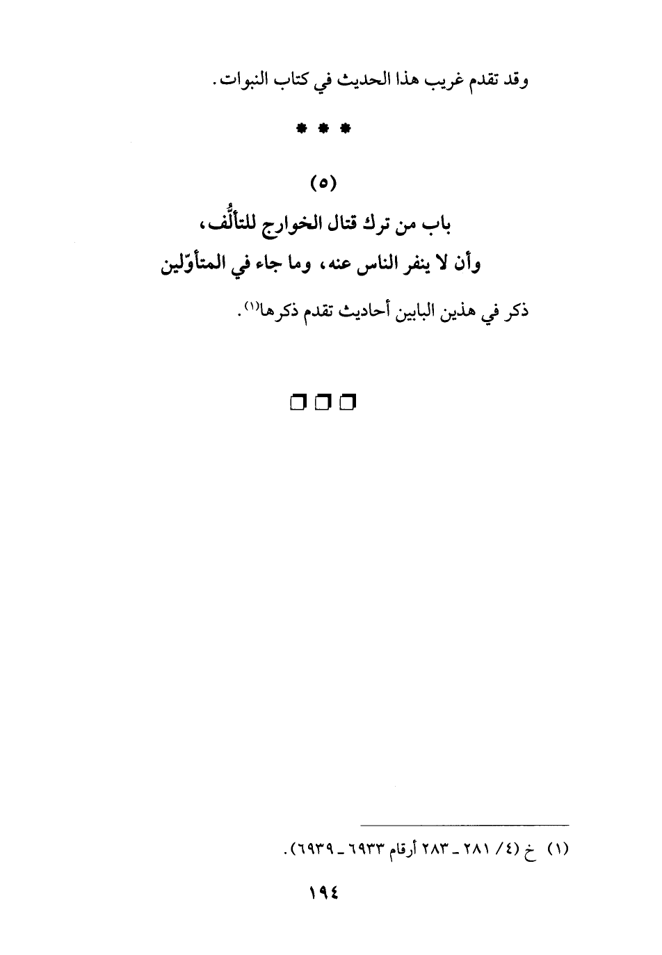 (5) باب من ترك قتال الخوارج للتألُّف، وأن لا ينفر الناس عنه، وما جاء في المتأوّلين
