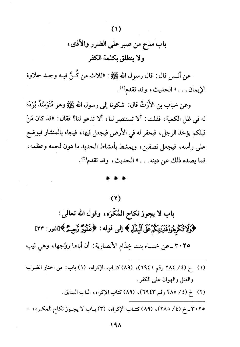 (¬1) خ (4/ 284 رقم 6941)، (89) كتاب الإكراه، (1) باب: من اختار الضرب والقتل والهوان على الكفر.
