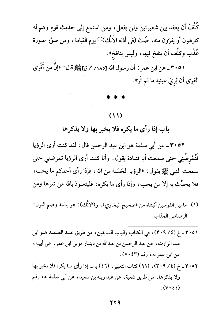 (11) باب إذا رأى ما يكره فلا يخبر بها ولا يذكرها