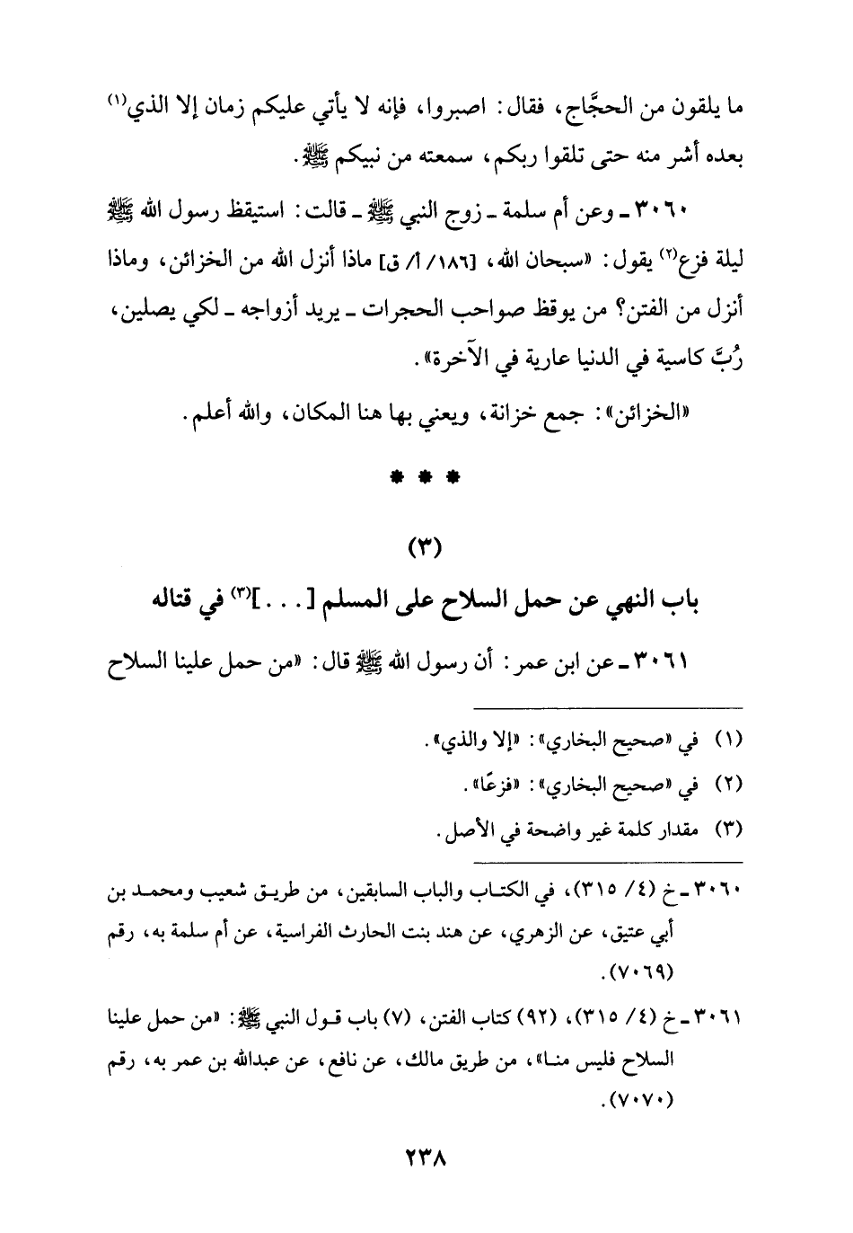 (3) باب النهي عن حمل السلاح على المسلم [. . .] (¬3) في قتاله