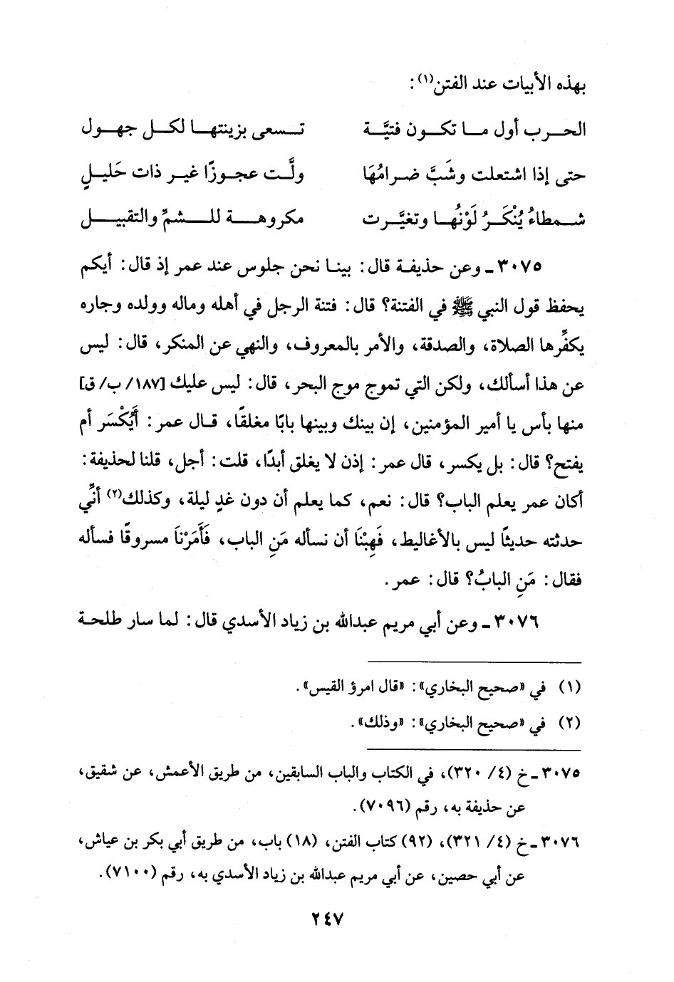 3076 - خ (4/ 321)، (92) كتاب الفتن، (18) باب، من طريق أبي بكر بن عياش، عن أبي حصين، عن أبي مريم عبد اللَّه بن زياد الأسدي به، رقم (7100).