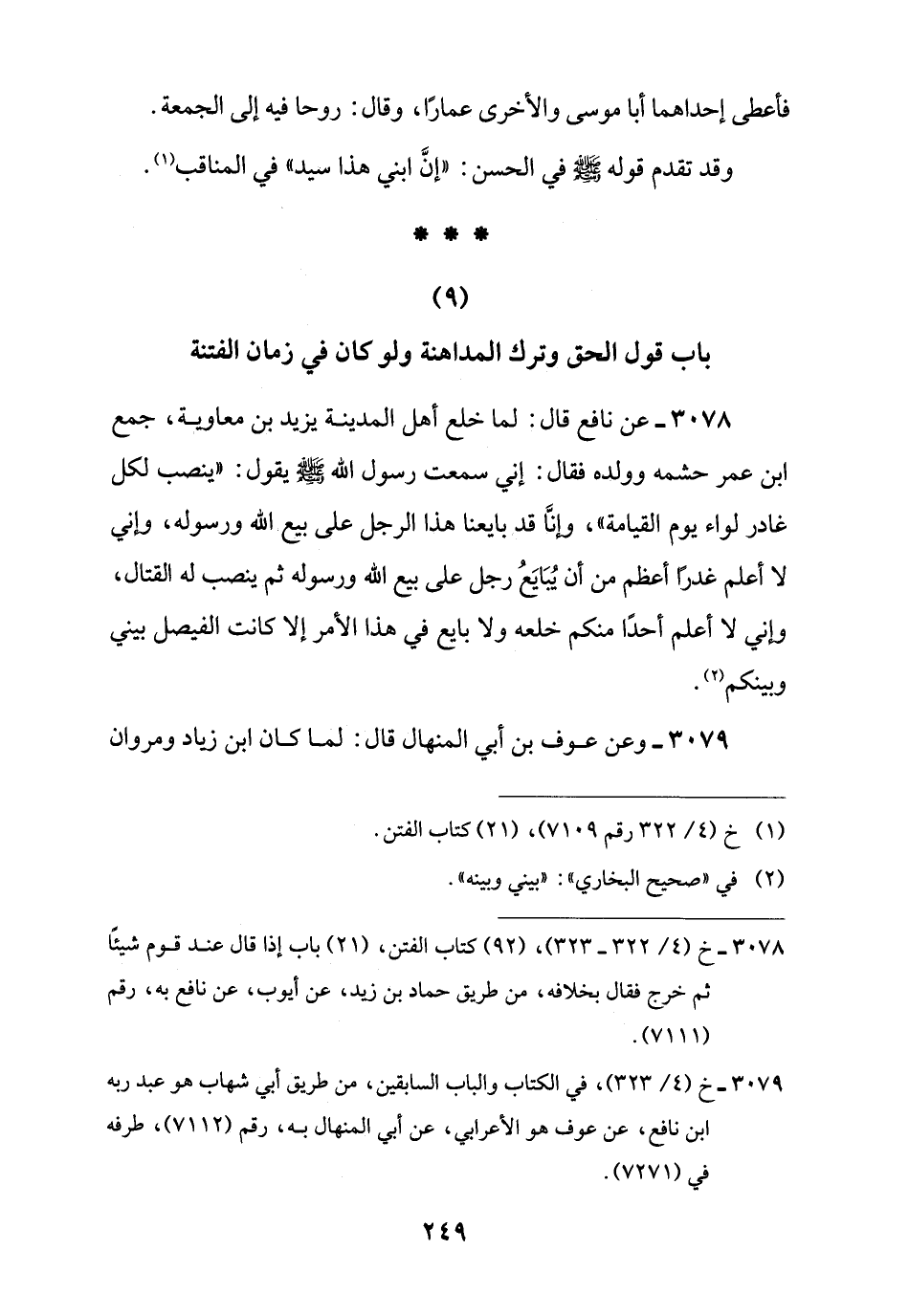 (9) باب قول الحق وترك المداهنة ولو كان في زمان الفتنة