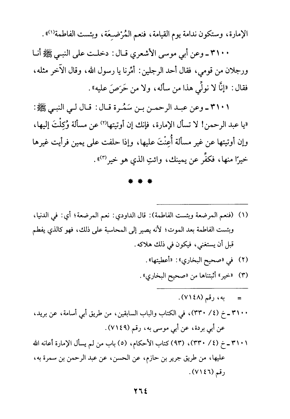 3100 - وعن أبي موسى الأشعري قال: دخلت على النبي -صلى اللَّه عليه وسلم- أنا ورجلان من قومي، فقال أحد الرجلين: أمِّرنا يا رسول اللَّه، وقال الآخر مثله، فقال: "إنَّا لا نولِّي هذا من سأله، ولا من حَرَصَ عليه".