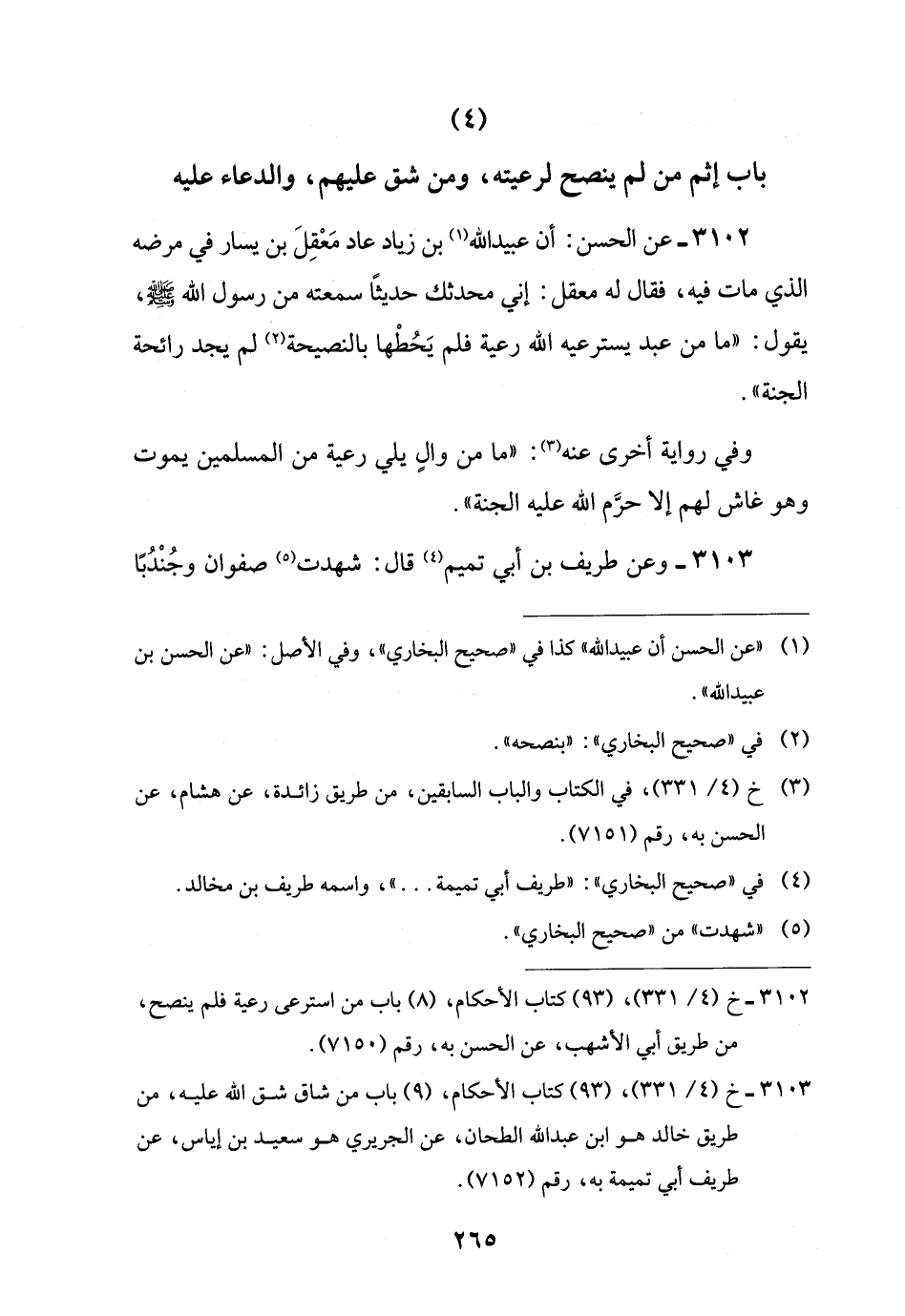 (4) باب إثم من لم ينصح لرعيته، ومن شق عليهم، والدعاء عليه