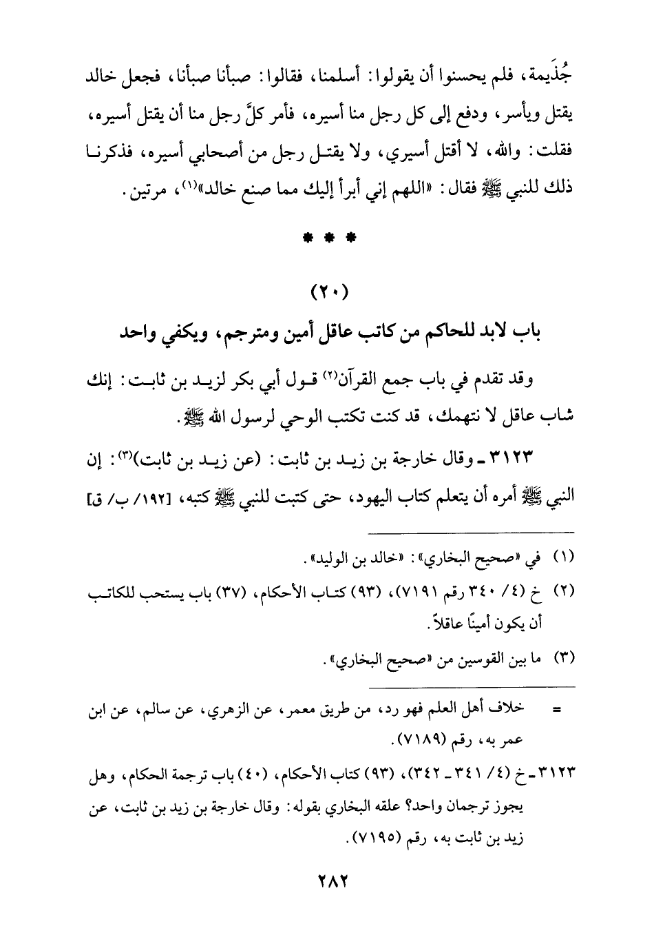 (20) باب لابد للحاكم من كاتب عاقل أمين ومترجم، ويكفي واحد