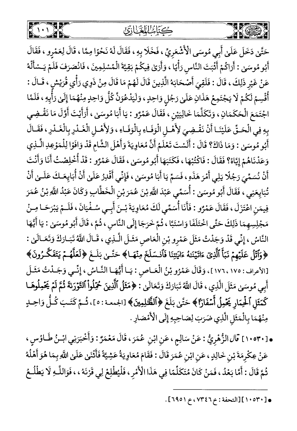 10530- قَالَ الزُّهْرِيُّ: عَن سَالِمٍ، عَنِ ابْنِ عُمَرَ.