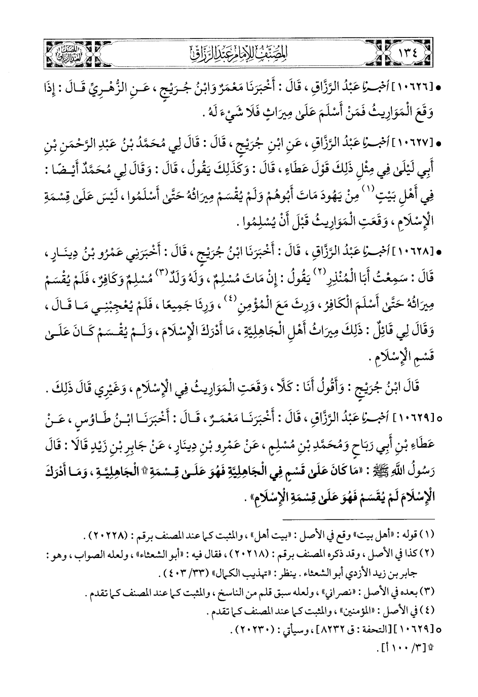 10629- أخبرنا عبد الرزاق، قال: أَخْبَرَنَا مَعْمَرٌ، قال: أَخْبَرَنَا ابْنُ طَاوُوسٍ، عَنْ عَطَاءِ بْنِ أَبِي رَبَاحٍ، وَمُحَمَّدِ بْنِ مُسْلِمٍ، عَنْ عَمْرِو بنِ دِينَارٍ، عَن جَابِرِ بْنِ زَيْدٍ، قَالاَ: قَالَ رَسُولُ اللهِ صَلَّى اللهُ عَلَيْهِ وَسَلَّمَ: مَا كَانَ عَلَى قَسْمِ فِي الْجَاهِلِيَّةِ فَهُوَ عَلَى قِسْمَةِ الْجَاهِلِيَّةِ، وَمَا أَدْرَكَ الإِسْلاَمَ لَمْ يُقْسَمْ، فَهُوَ عَلَى قِسْمَةِ الإِسْلاَمِ.