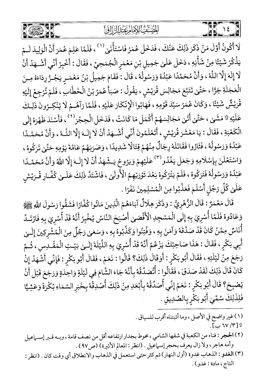 قَالَ مَعْمَرٌ: قَالَ الزُّهْرِيُّ: وَذَكَرَ هِلاَلٌ آبَاءَهُمُ الَّذِينَ مَاتُوا كُفَّارًا، فَشَقُّوا رَسُولَ اللهِ صَلَّى اللهُ عَلَيْهِ وَسَلَّمَ وَعَادَوْهُ، فَلَمَّا أُسْرِيَ بِهِ إِلَى المَسْجِدِ الأَقْصَى، أَصْبَحَ النَّاسُ يُخْبِرُ أَنَّهُ قَدْ أُسْرِيَ بِهِ، فَارْتَدَّ أُنَاسٌ مِمَّنْ كَانَ قَدْ صَدَّقَهُ وَآمَنَ بِهِ، وَفُتِنُوا، وَكَذَّبُوهُ بِهِ، وَسَعَى رَجُلٌ مِنَ المُشْرِكِينَ إِلَى أَبِي بَكْرٍ، فَقَالَ: هَذَا صَاحِبُكَ يَزْعُمُ أَنَّهُ قَدْ أُسْرِيَ بِهِ اللَّيْلَةَ إِلَى بَيْتِ المَقْدِسِ، ثُمَّ رَجَعَ مِنْ لَيْلَتِهِ، فَقَالَ أَبو بَكْرٍ: أَوَقَالَ ذَلِكَ؟ قَالُوا: نَعَمْ، فَقَالَ أَبو بَكْرٍ: فَإِنِّي أَشْهَدُ إِنْ كَانَ قَالَ ذَلِكَ لَقَدْ صَدَقَ، فَقَالُوا: أَتُصَدِّقَهُ بِأَنَّهُ جَاءَ الشَّامَ فِي لَيْلَةٍ وَاحِدَةٍ، وَرَجَعَ قَبْلَ أَنْ يُصْبِحَ؟ قَالَ أَبو بَكْرٍ: نَعَمْ، إِنِّي أُصَدِّقُهُ بِأَبْعَدَ مِنْ ذَلِكَ أُصَدِّقُهُ بِخَبَرِ السَّمَاءِ بُكْرَةً وَعَشِيًّا، فَلِذَلِكَ سُمَيَّ أَبو بَكْر بِالصِّدِّيقِ.