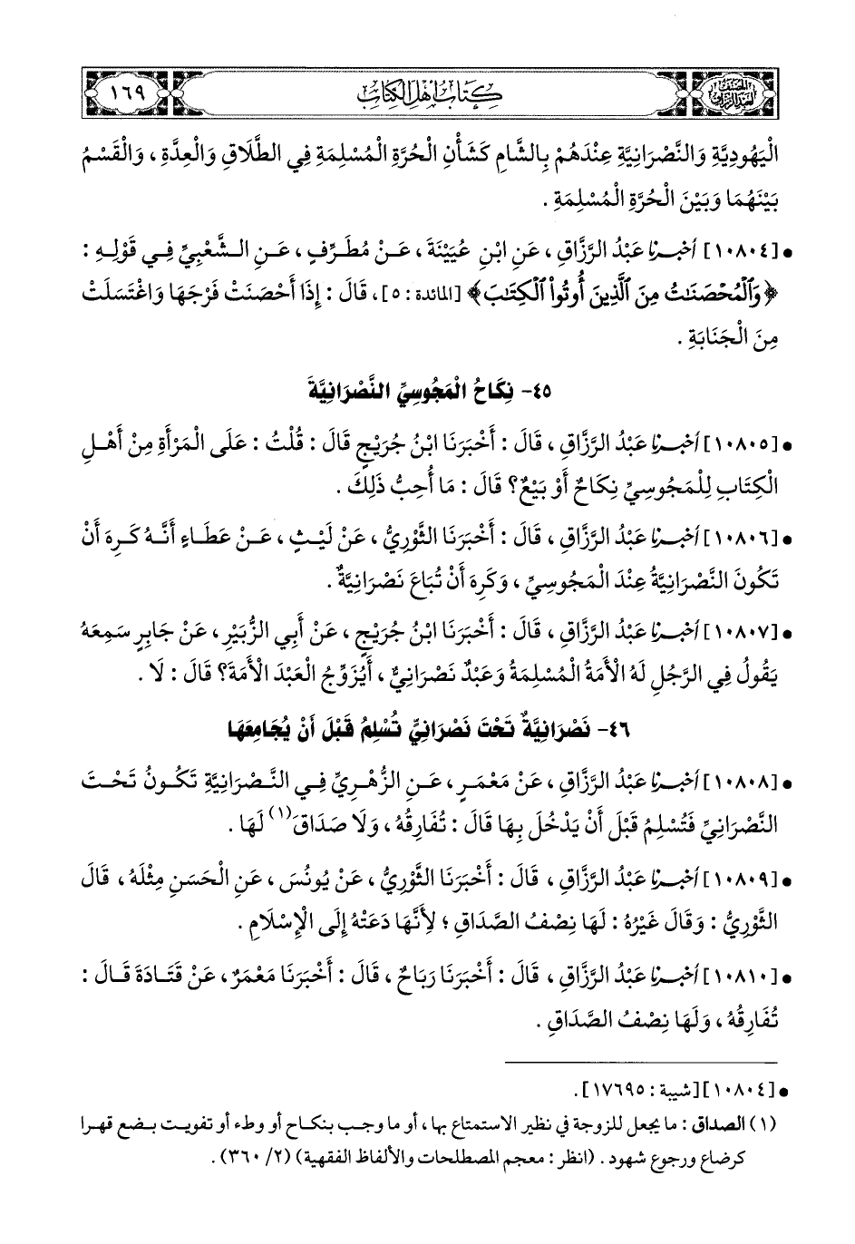 10804- أخبرنا عبد الرزاق، عَنِ ابْنِ عُيَيْنَةَ، عَن مُطَرِّفٍ، عَنِ الشَّعْبِيِّ، فِي قَوْلِهِ: {وَالمُحْصَنَاتُ مِنَ الَّذِينَ أُوتُوا الْكِتَابِ}، قَالَ: إِذَا أَحْصَنَتْ فَرْجَهَا وَاغْتَسَلَتْ مِنَ الْجَنَابَةِ.