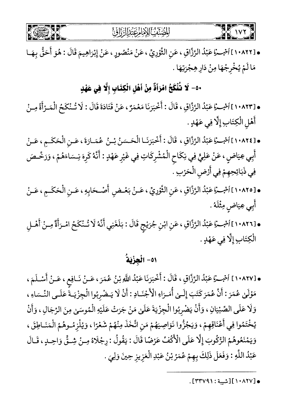 50 - لاَ تُنْكَحُ امْرَأَةٌ مِنْ أَهْلِ الْكِتَابِ إِلاَّ فِي عَهْدٍ.