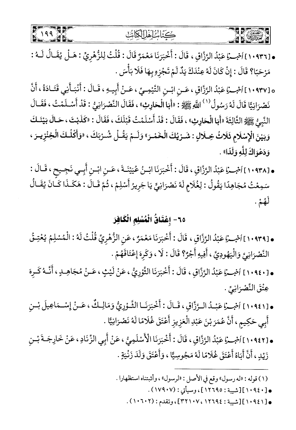 10941- أخبرنا عبد الرزاق، قال: أَخْبَرَنَا الثَّورِيُّ، وَمَالِكٌ، عَن إِسْمَاعِيلَ بْنِ أَبِي حَكِيمٍ؛ أَنَّ عُمَرَ بن عَبدِ الْعَزِيزِ أَعْتَقَ غُلاَمًا لَهُ نَصْرَانِيًّا.