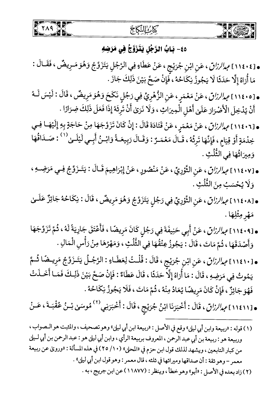 11407- عبد الرزاق، عَنِ الثَّورِيِّ، عَنْ مَنصُورٍ، عَن إِبرَاهِيمَ، قَالَ: يَتَزَوَّجُ فِي مَرَضِهِ، وَلاَ يُحْسَبُ مِنَ الثُّلُثِ.