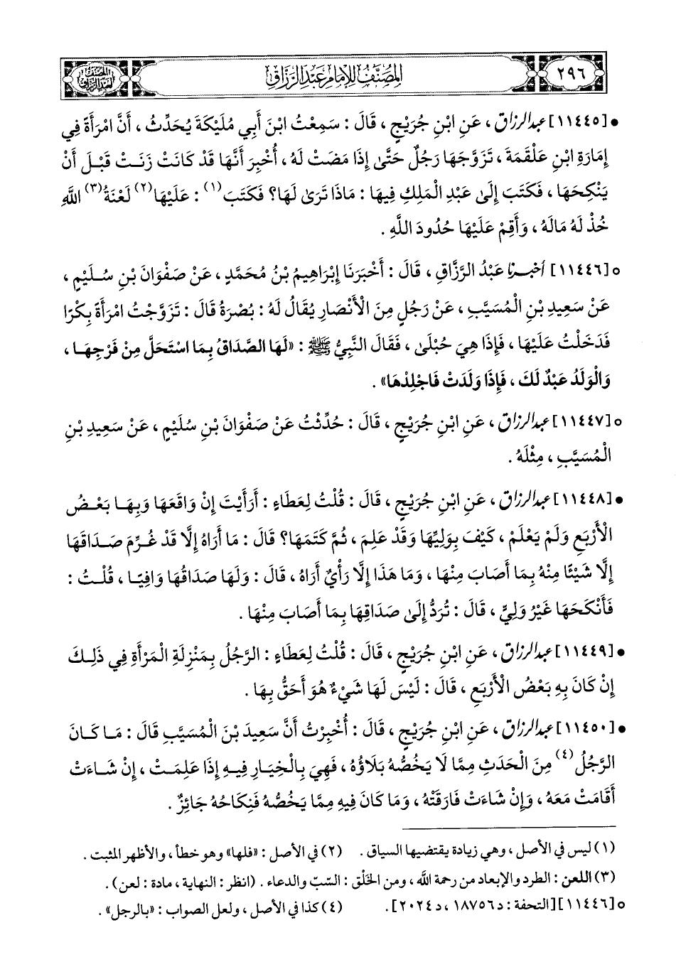 11447- عبد الرزاق، عَنِ ابْنِ جُرَيْجٍ، قَالَ: حُدِّثْتُ، عَن صَفْوَانَ بْنِ سُلَيْمٍ، عَن سَعيدِ بْنِ المُسَيَّبِ، مِثْلَهُ.