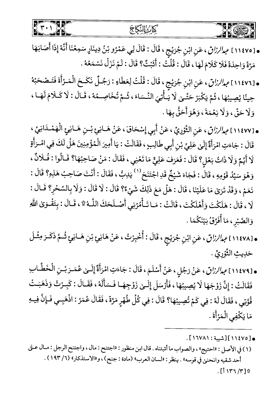 11475- عبد الرزاق، عَنِ ابْنِ جُرَيْجٍ، قَالَ: قَالَ لِي عَمْرُو بن دِينَارٍ: سَمِعْنَا أَنَّهُ إِذَا أَصَابَهَا مَرَّةً وَاحِدَةً فَلاَ كَلاَمَ لَهَا، قَالَ: قُلْتُ: أَثَبْتٌ؟ قَالَ: لَمْ نَزَلْ نَسْمَعُهُ.