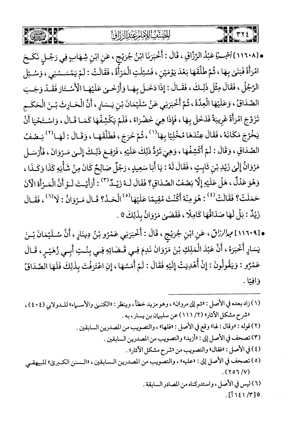 11609- عبد الرزاق، عَنِ ابْنِ جُرَيْجٍ، قَالَ: أَخْبَرَنِي عَمْرُو بن دِينَارٍ، أَنَّ سُلَيْمَانَ بن يَسَارٍ أَخْبَرَهُ، أَنَّ عَبدَ المَلِكِ بن مَرْوَانَ نَدِمَ فِي قَضَائِهِ فِي بِنْتِ أَبِي زُهَيْرٍ، قَالَ عَمْرٌو: وَيَقُولُونَ: إِنْ أُهْدِيَتْ إِلَيْهِ، فَقَالَ: لَمْ أَمَسَّهَا، إِنِ اعْتَرَفَتْ بِذَلِكَ، فَلَهَا الصَّدَاقُ وَافِيًا.