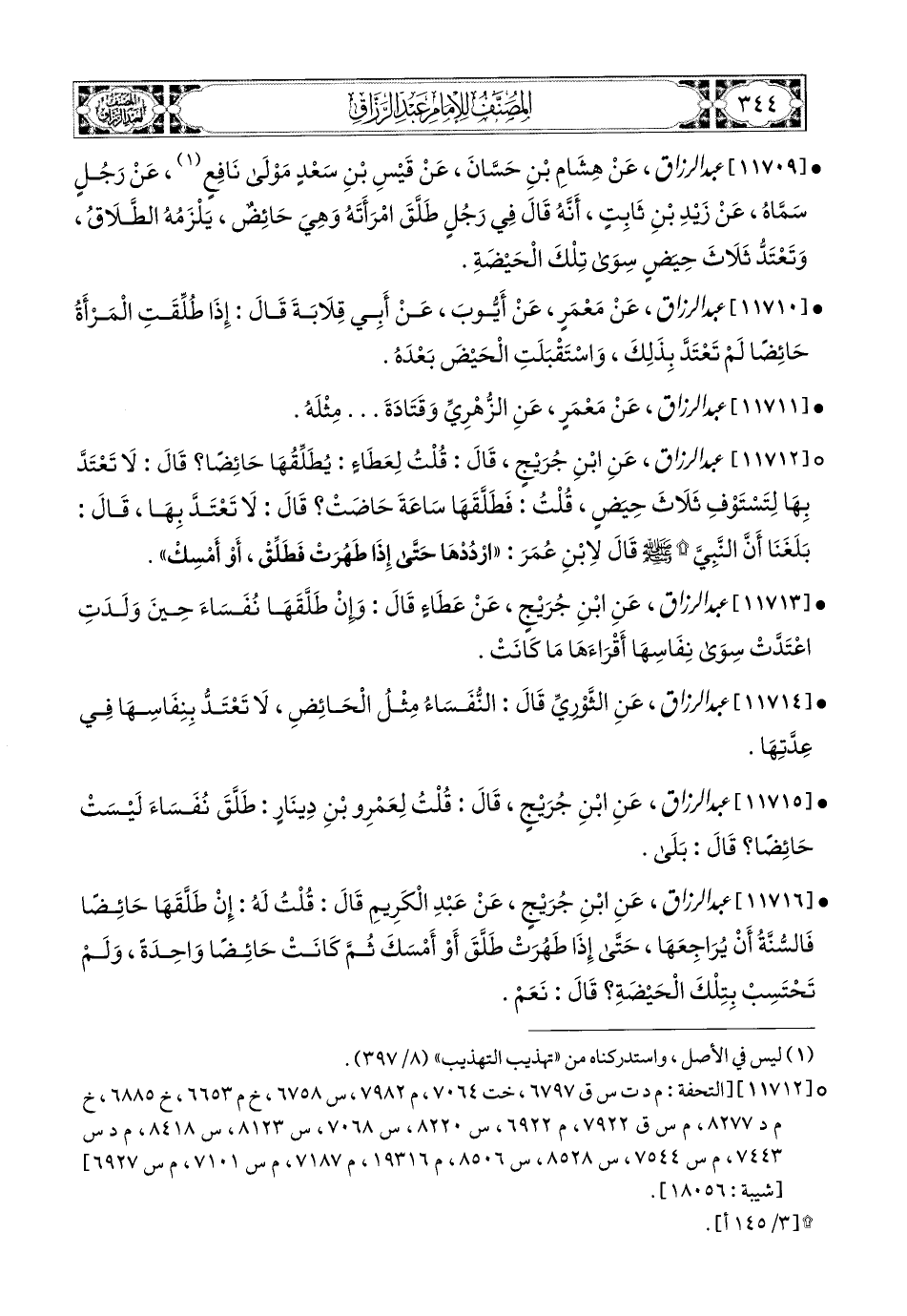 11709 - عبد الرزاق، عَن هِشَامِ بْنِ حَسَّانَ، عَن قَيْسِ بْنِ سَعْدٍ مَوْلَى نَافِعٍ (1)، عَن رَجُلٍ سَمَّاهُ، عَن زَيْدِ بْنِ ثَابِتٍ، أَنَّهُ قَالَ فِي رَجُلٍ طَلَّقَ امْرَأَتَهُ وَهِيَ حَائِضٌ: يَلْزَمُهُ الطَّلاَقُ، وَتَعْتَدُّ ثَلاَثَ حِيَضٍ سِوَى تِلْكَ الْحَيْضَةِ.