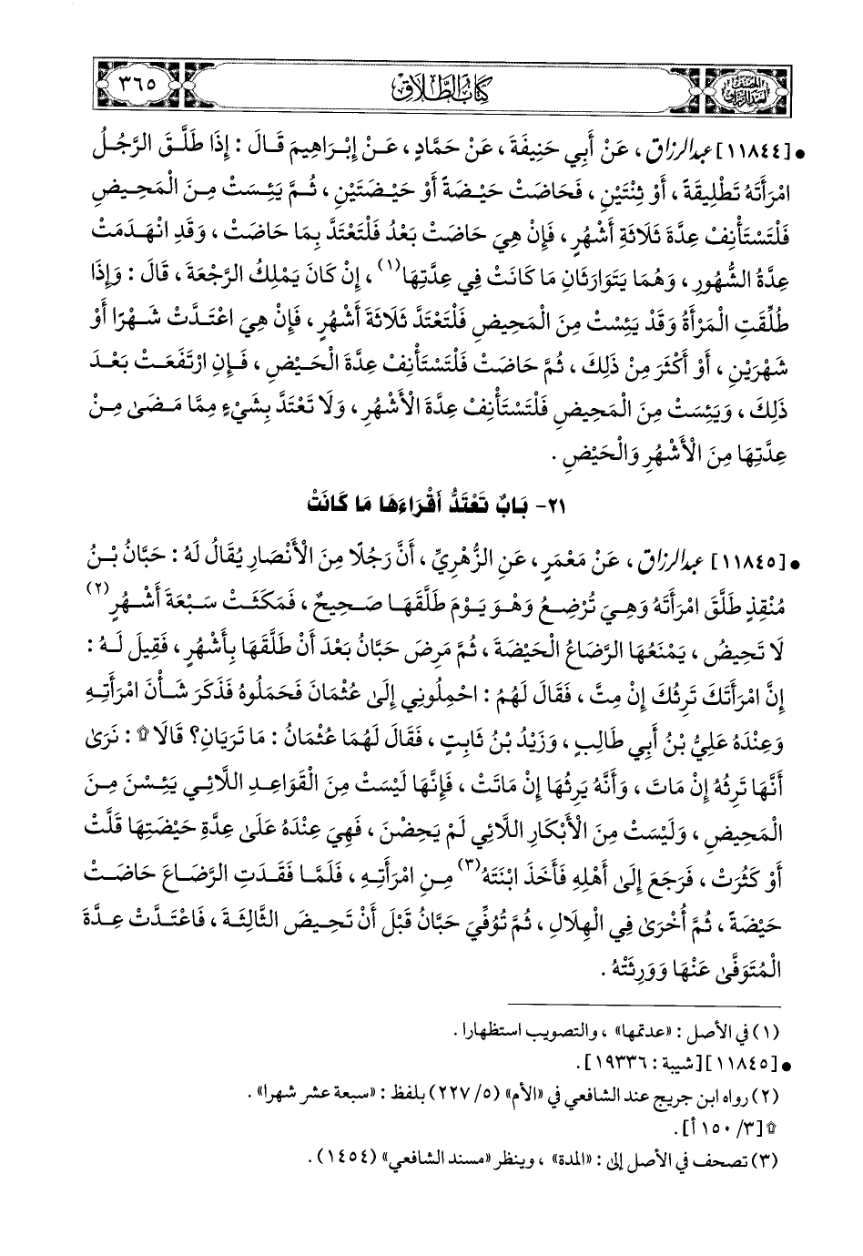 11844- عبد الرزاق، عَنْ أَبِي حَنِيفَةَ، عَن حَمَّادٍ، عَن إِبرَاهِيمَ، قَالَ: إِذَا طَلَّقَ الرَّجُلُ امْرَأَتَهُ تَطْلِيقَةً، أَوْ ثِنْتَيْنِ، فَحَاضَتْ حَيْضَةً، أَوْ حَيْضَتَيْنِ، ثُمَّ يَئِسَتْ مِنَ المَحِيضِ فَلْتَسْتَأْنِفْ عِدَّةَ ثَلاَثَةِ أَشْهُرٍ، فَإِنْ هِيَ حَاضَتْ بَعْدُ فَلْتَعْتَدَّ بِمَا حَاضَتْ، وَقَدِ انْهَدَمَتْ عِدَّةُ الشُّهُورِ، وَهُمَا يَتَوَارَثَانِ مَا كَانَتْ فِي عِدَّتِهَا، إِنْ كَانَ يَمْلِكُ الرَّجْعَةَ، قَالَ: وَإِذَا طُلِّقَتِ المَرْأَةُ وَقَدْ يَئِسَتْ مِنَ المَحِيضِ فَلْتَعْتَدَّ ثَلاَثَةَ أَشْهُرٍ، فَإِنْ هِيَ اعْتَدَّتْ شَهْرًا، أَوْ شَهْرَيْنِ، أَوْ أَكْثَرَ مِنْ ذَلِكَ، ثُمَّ حَاضَتْ فَلْتَسْتَأْنِفْ عِدَّةَ الْحَيْضِ، فَإِنِ ارْتَفَعَتْ بَعْدَ ذَلِكَ، وَيَئِسَتْ مِنَ المَحِيضِ فَلْتَسْتَأْنِفْ عِدَّةَ الأَشْهُرِ، وَلاَ تَعْتَدَّ بِشَيْءٍ مِمَّا مَضَى مِنْ عِدَّتِهَا مِنَ الأَشْهُرِ وَالْحَيْضِ.