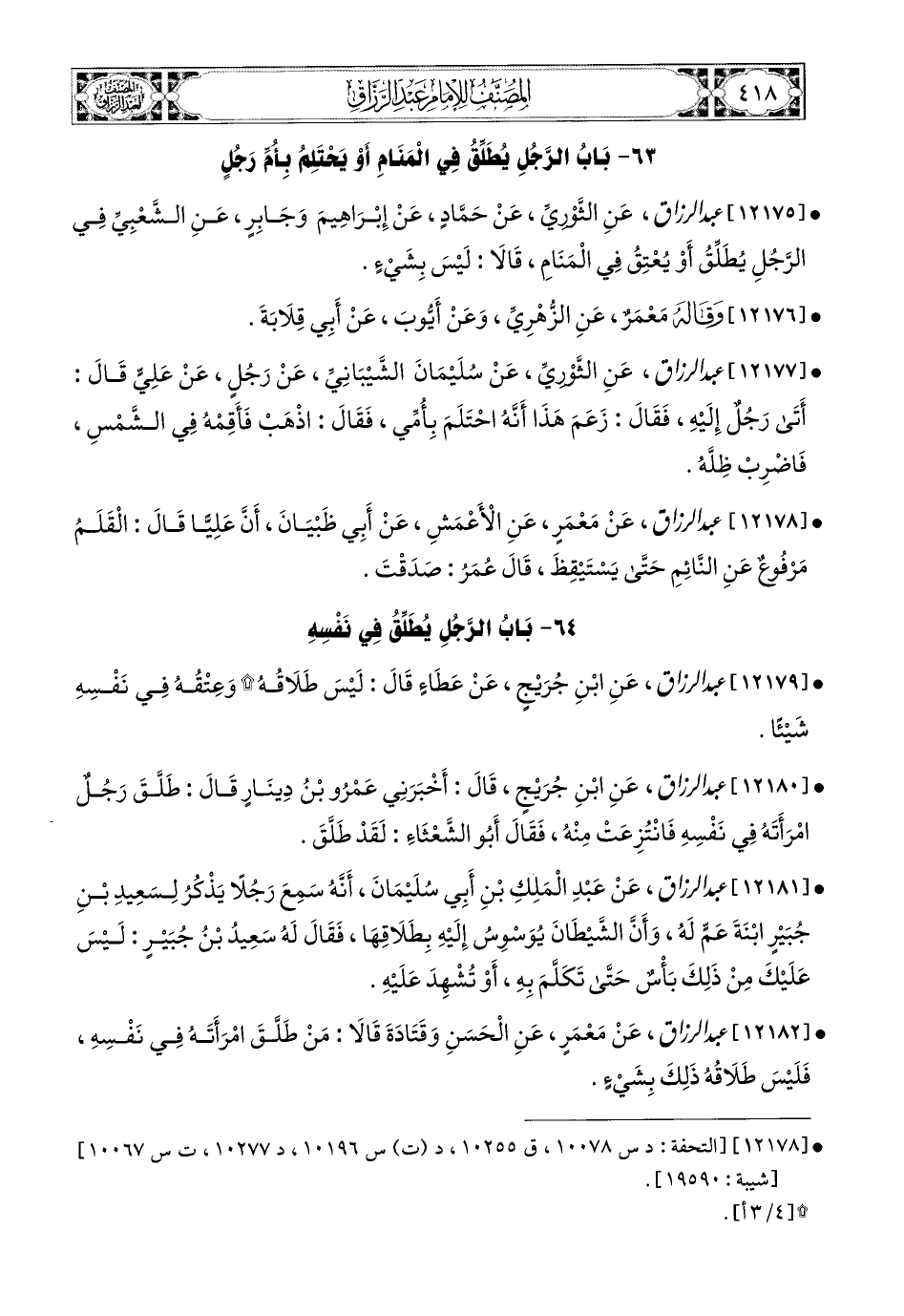 12175- عبد الرزاق، عَنِ الثَّورِيِّ، عَن حَمَّادٍ، عَن إِبرَاهِيمَ، وَجَابِرٍ، عَنِ الشَّعْبِيِّ، فِي الرَّجُلِ يُطَلِّقُ، أَوْ يَعْتِقُ فِي المَنَامِ، قَالاَ: لَيْسَ بِشَيْءٍ.