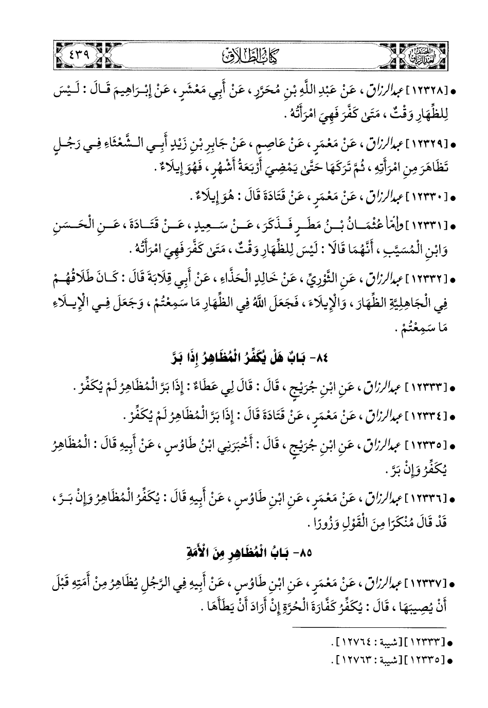 12337- عبد الرزاق، عَنْ مَعْمَرٍ، عَنِ ابْنِ طَاوُوسٍ، عَنْ أَبِيهِ، فِي الرَّجُلِ يُظَاهِرُ مِنْ أَمَتِهِ قَبْلَ أَنْ يُصِيبَهَا، قَالَ: يُكَفِّرُ كَفَّارَةَ الْحُرَّةِ، إِنْ أَرَادَ أَنْ يَطَأَهَا.
