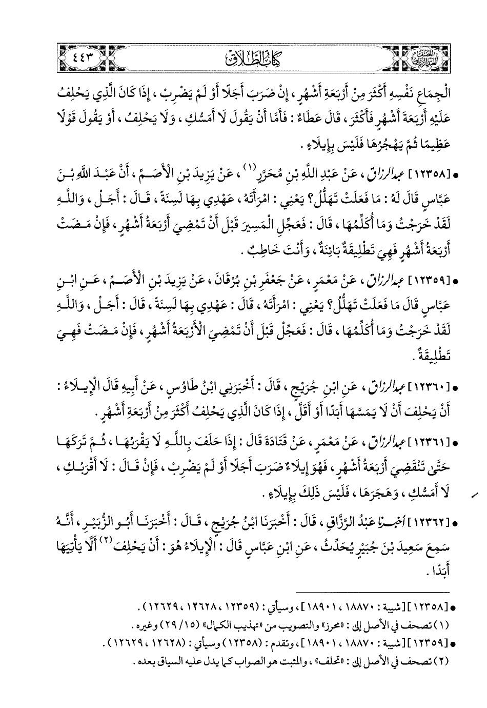 12362- أخبرنا عبد الرزاق، قال: أَخْبَرَنَا ابْنُ جُرَيْجٍ، قال: أَخْبَرَنَا أَبو الزُّبَيْرِ، أَنَّهُ سَمِعَ سَعيدَ بن جُبَيرٍ يُحِدِّثُ، عَنِ ابْنِ عَبَّاسٍ، قَالَ: الإِيلاَءُ هُوَ أَنْ يَحْلِفَ أَنْ لاَ يَأْتِيَهَا أَبَدًا.