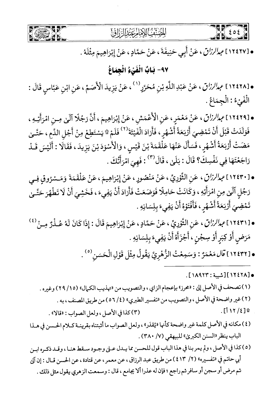 كتاب المصنف لعبد الرزاق الصنعاني - ط التأصيل (اسم الجزء: 5)