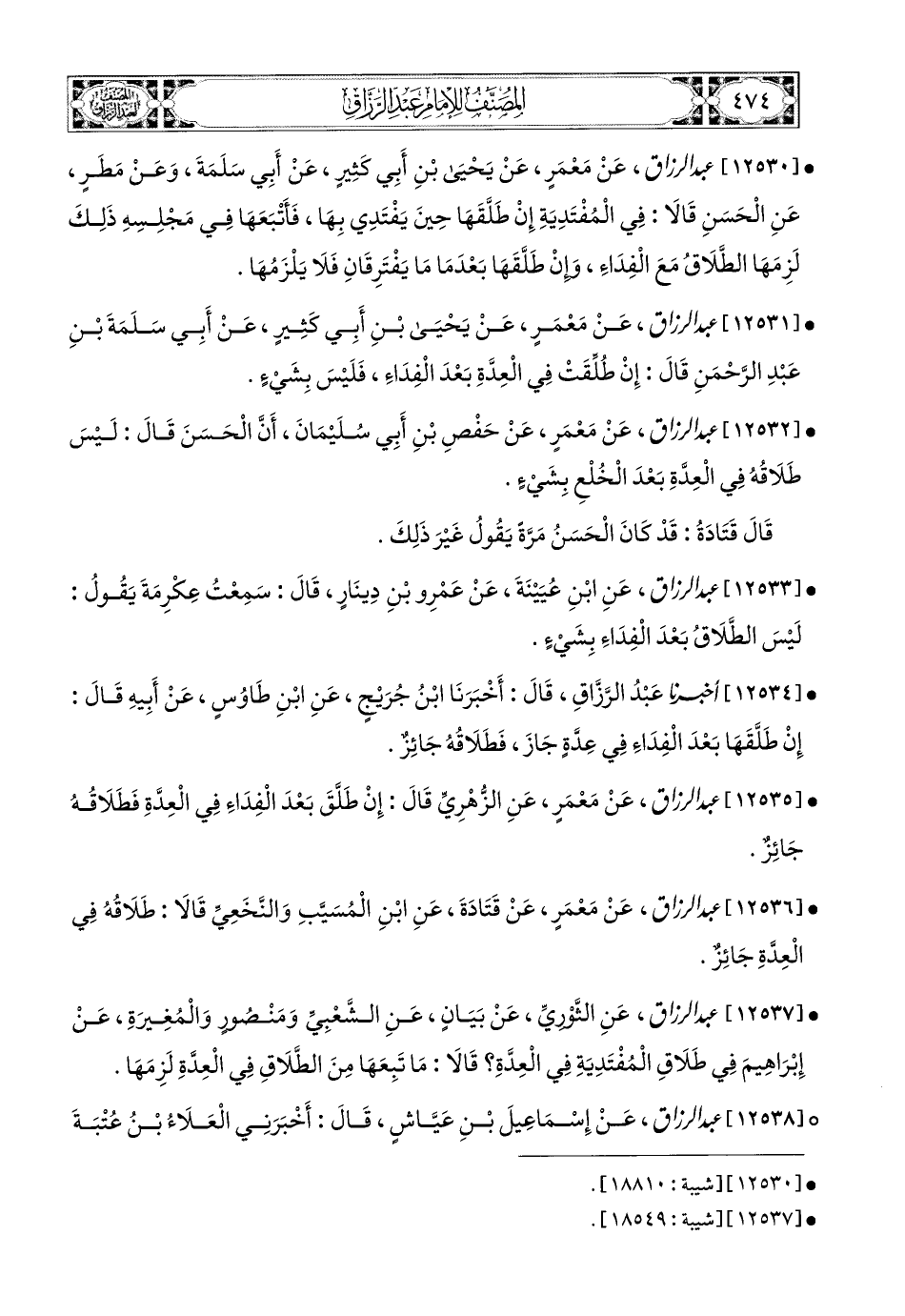 12531- عبد الرزاق، عَنْ مَعْمَرٍ، عَن يَحيَى بنِ أَبِي كَثِيرٍ، عَنْ أَبِي سَلَمَةَ بنِ عَبدِ الرَّحْمَنِ، قَالَ: إِنْ طُلِّقَتْ فِي الْعِدَّةِ بَعْدَ الْفِدَاءِ، فَلَيْسَ بِشَيْءٍ.